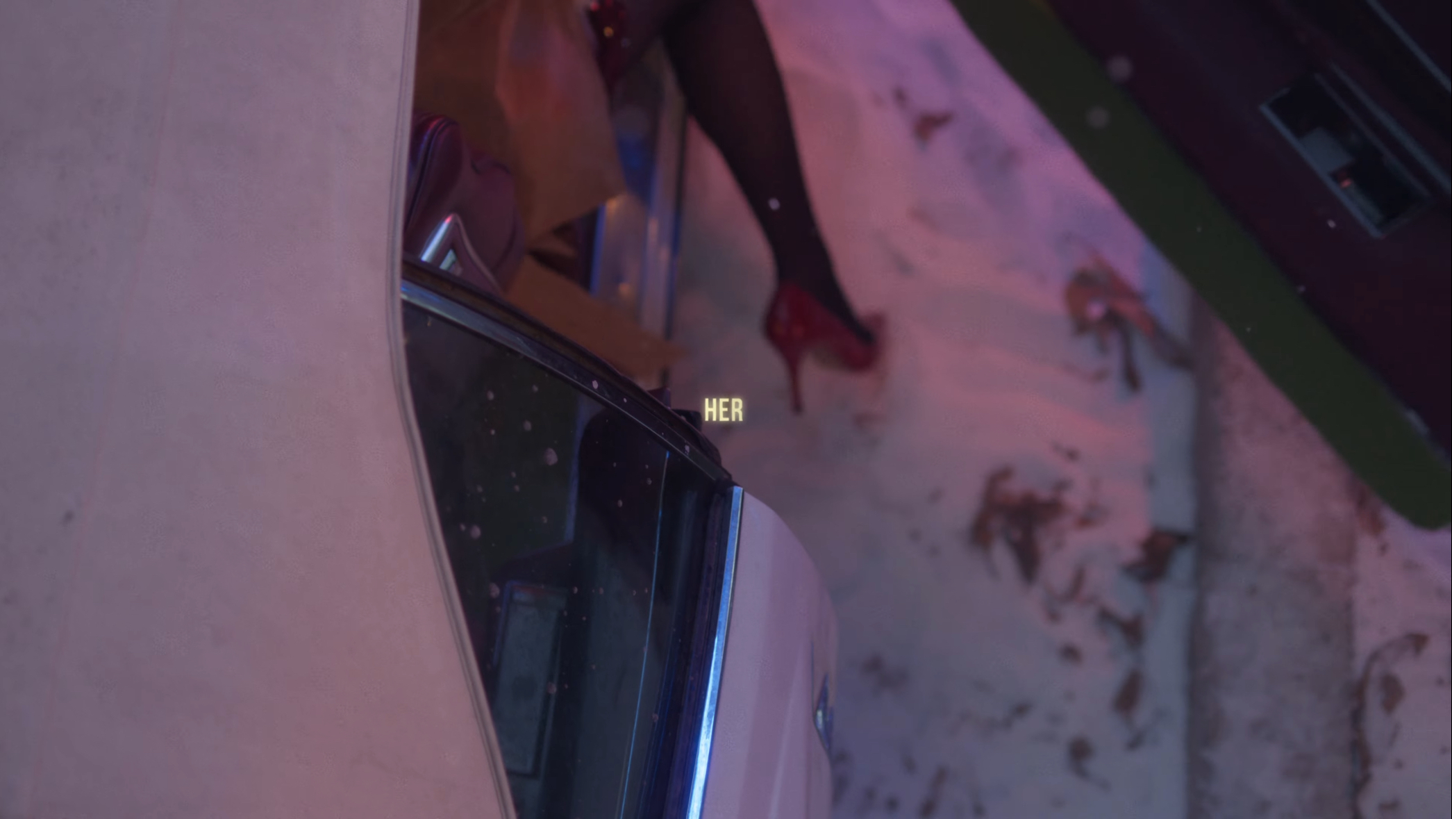 하얀색 캐딜락 안의 H는 뭔가 일어나면 안되는 일을 본 듯 창문 너머로 S를 보고 있다.