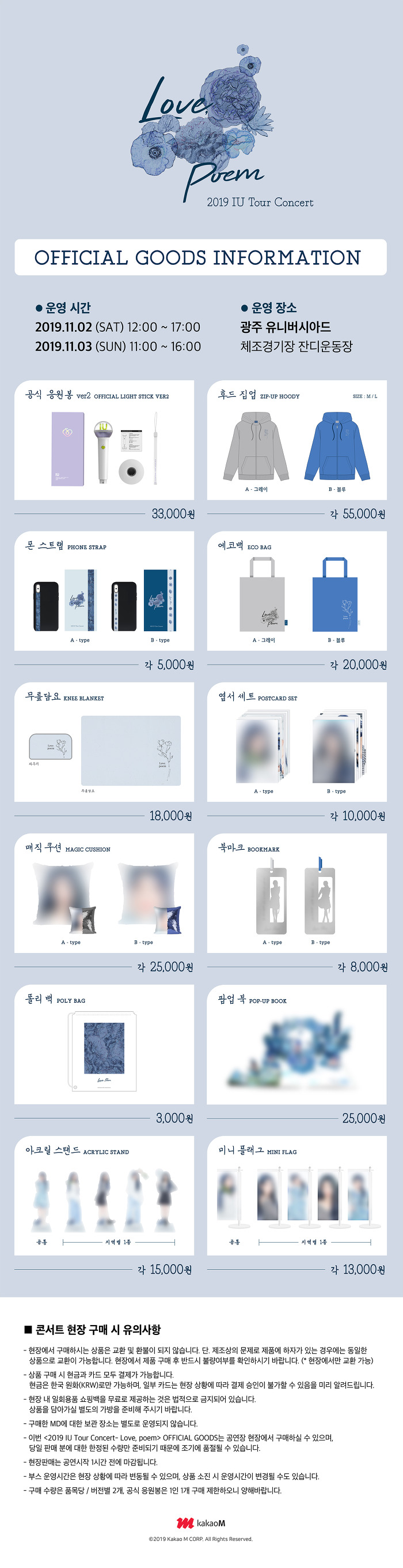 [[공지]]2019 아이유 투어 콘서트 <Love, poem> 광주 공연 공식 MD 판매 안내
