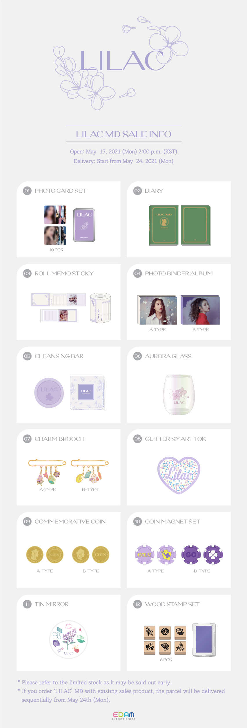 [[공지]]IU New MD 'LILAC' 판매 안내 작성자IU official staff|작성시간21.05.13|조회수20,910 목록 댓글 0 글자크기 작게가 글자크기 크게가 EDAM 공식 온라인 쇼핑몰에서아이유 새로운 MD ‘LILAC’을 만나보세요🐥 2021. 5. 17. 2PM (KST) 자세한 사항은 EDAM 공식 온라인 쇼핑몰 홈페이지를 확인해주세요.감사합니다.▶ http://madeedam.com 다음검색 현재 게시글 추가 기능 열기 북마크 공유하기 신고 센터로 신고 댓글 댓글 0 댓글쓰기 답글쓰기 댓글 리스트