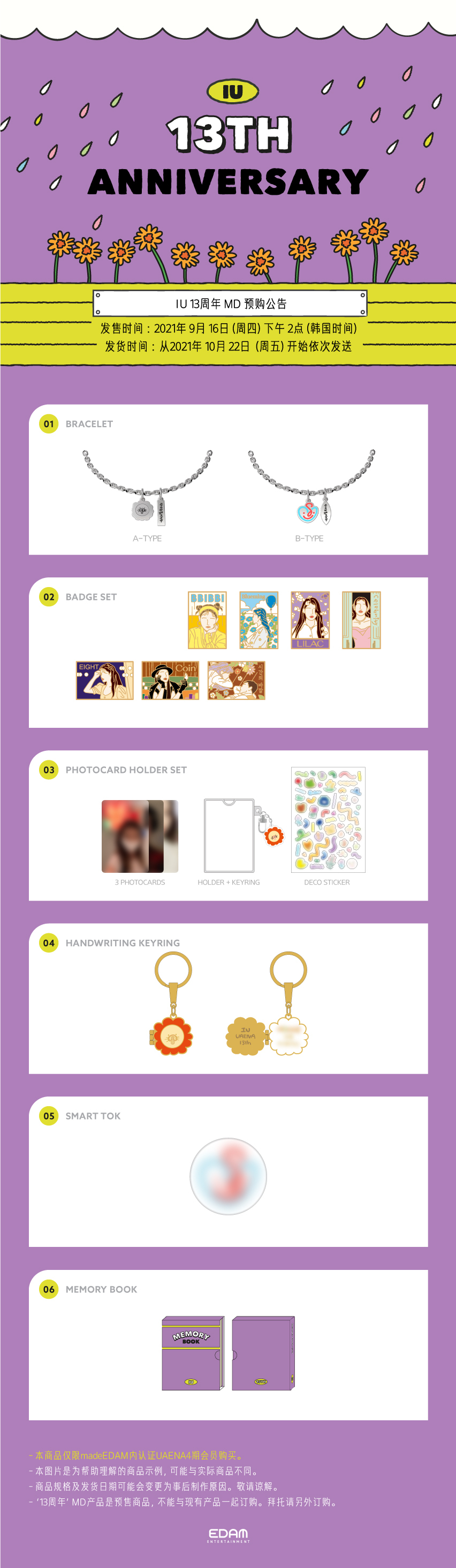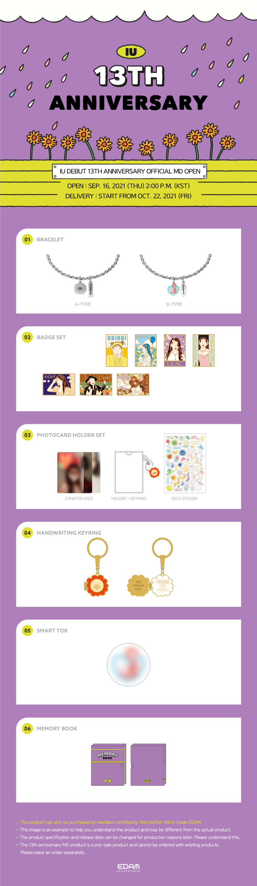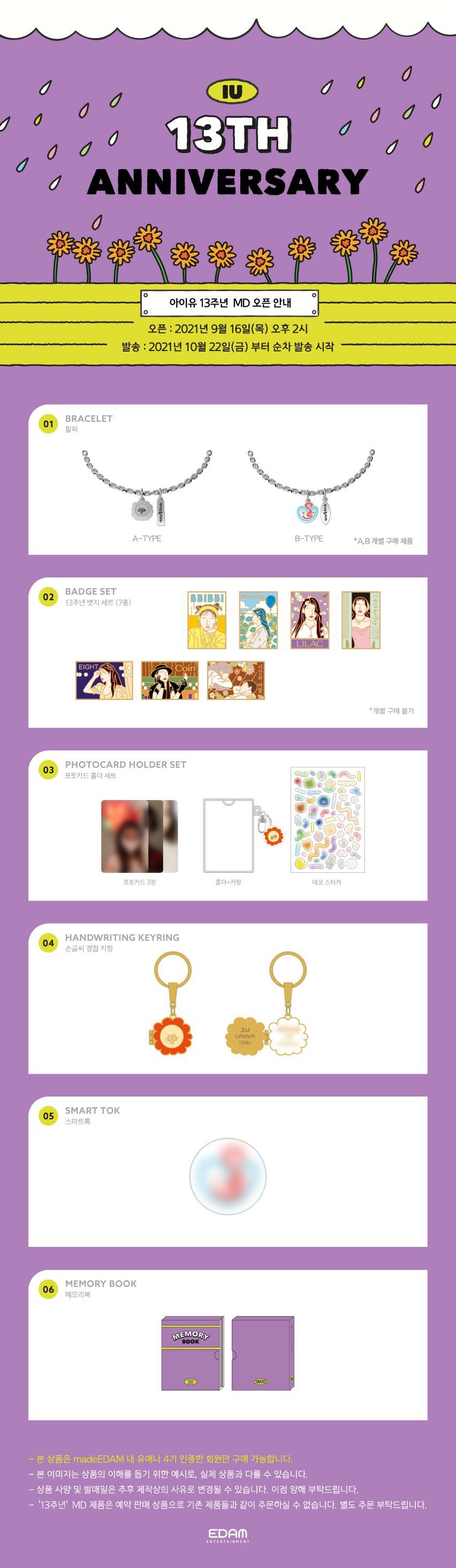 아이유 데뷔 13주년을 맞이하여 유애나 4기를 위한 기념 MD 예약 판매 안내 드립니다.