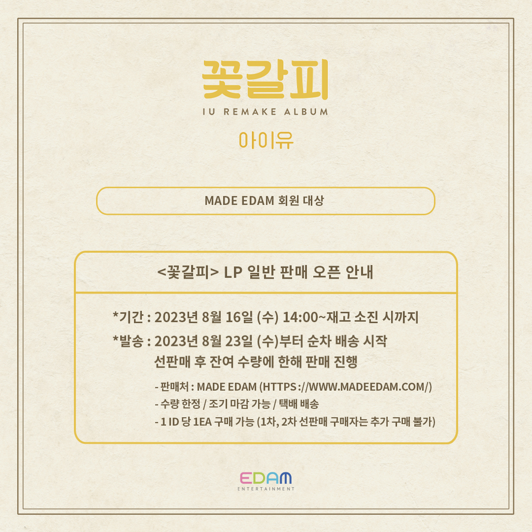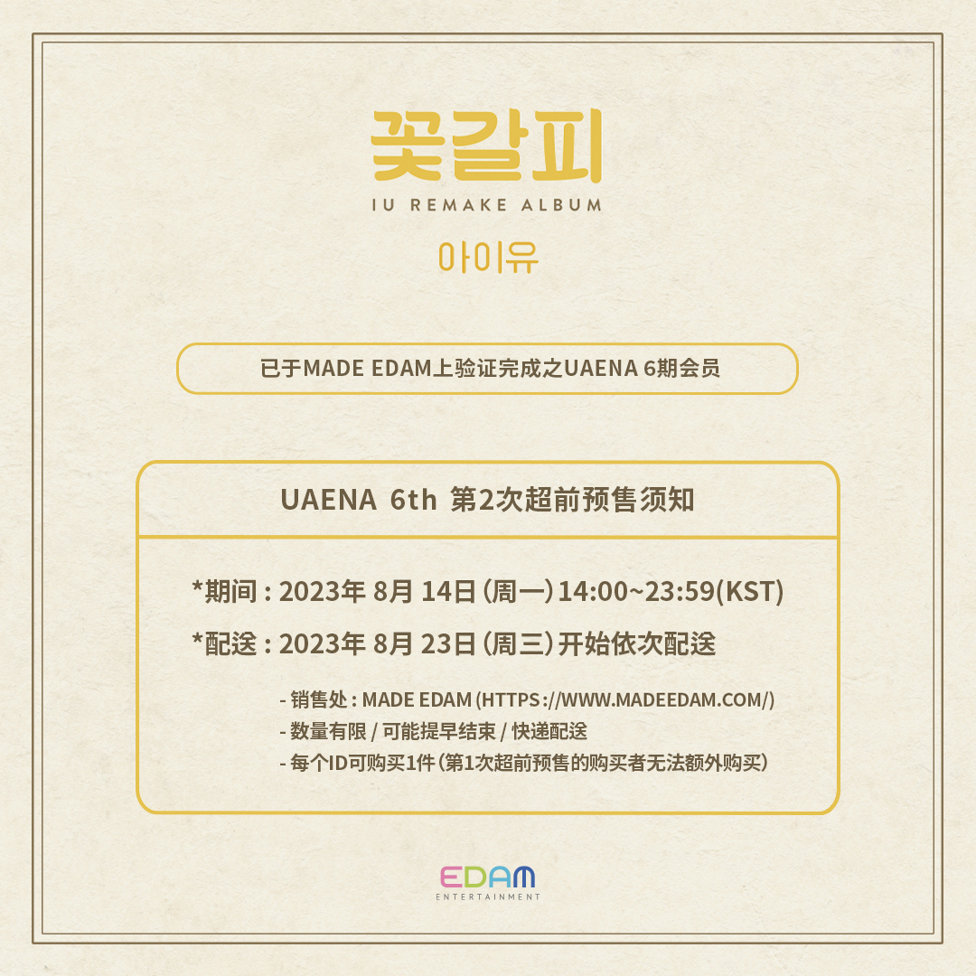 此为<꽃갈피>LP UAENA第6期第2次超前预售与普通销售开启须知,想要购买的粉丝朋友们请确认以下内容。