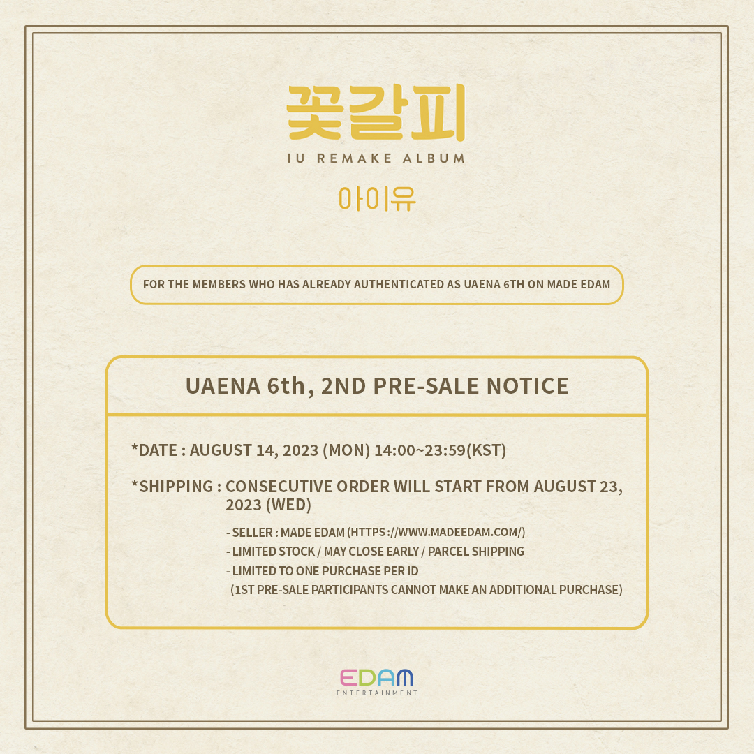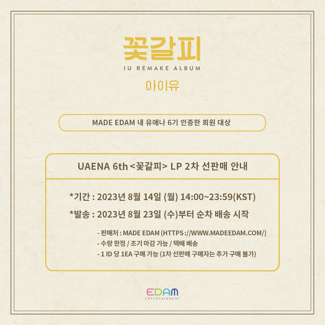 We are announcing the 2nd pre-sale for 6th gen of UAENA and the regular sale of the <꽃갈피> LP.