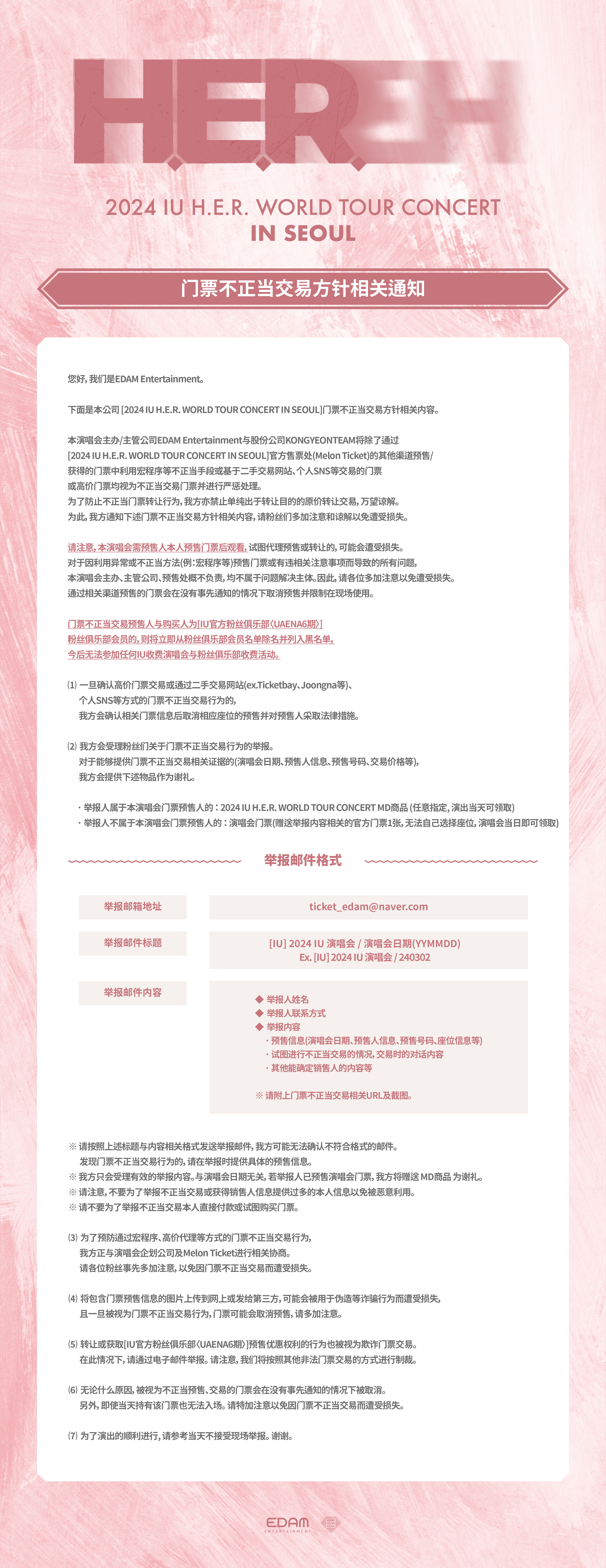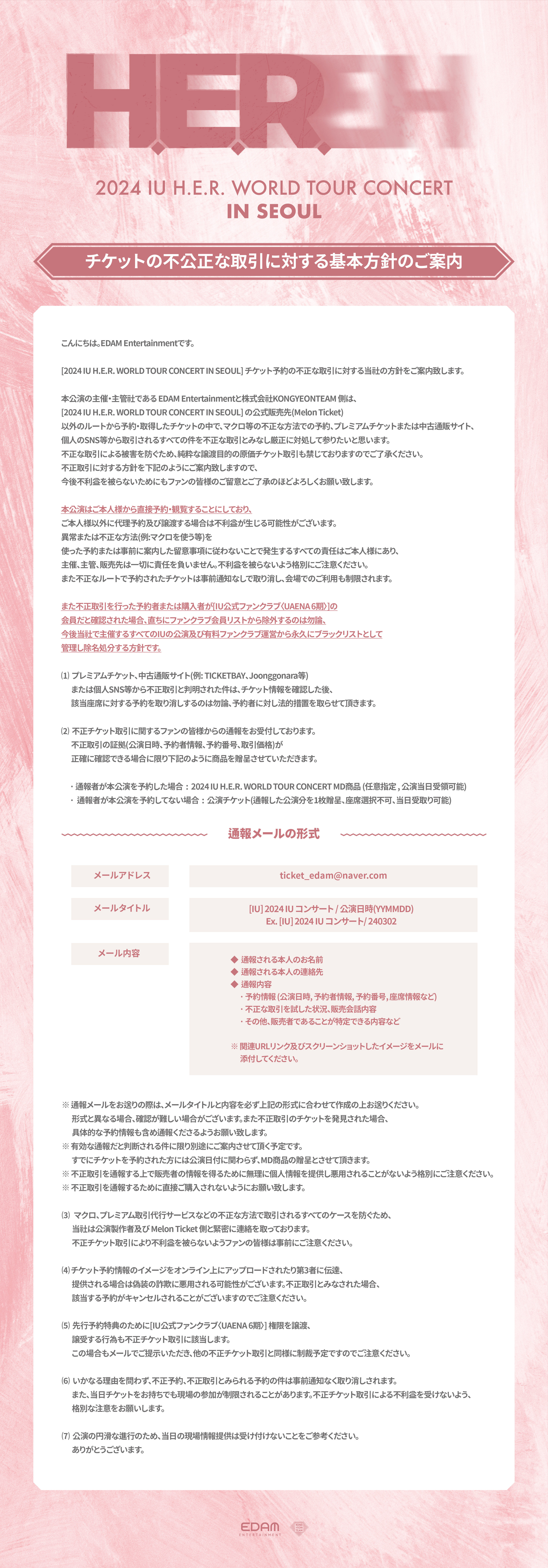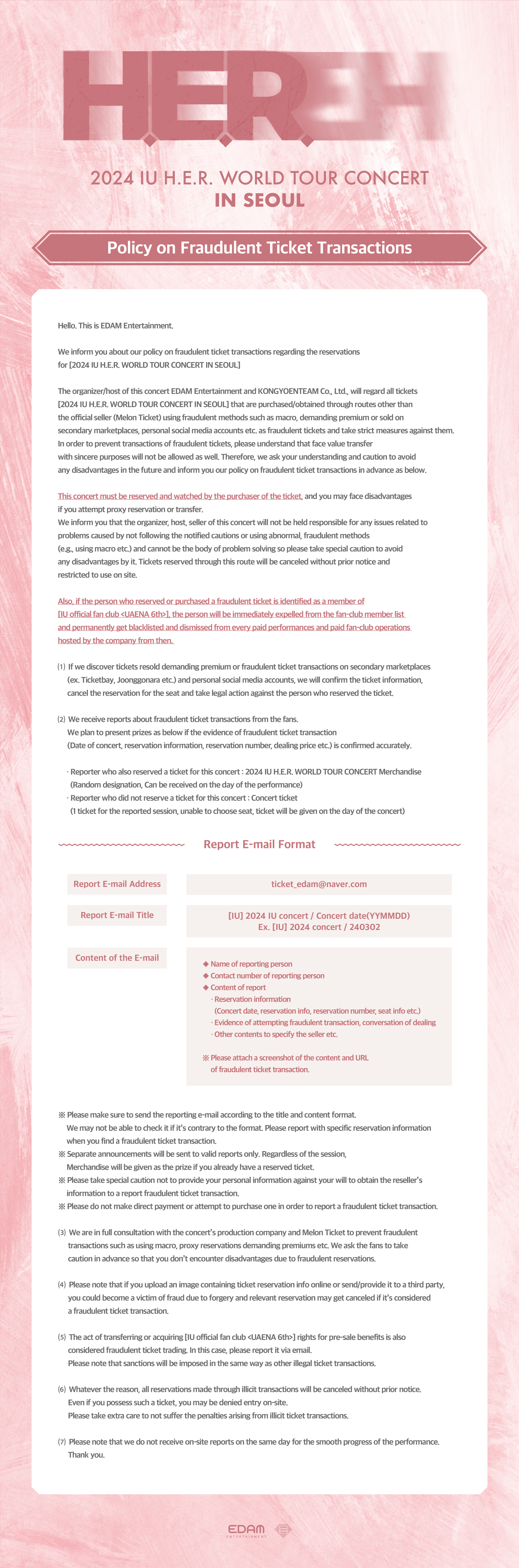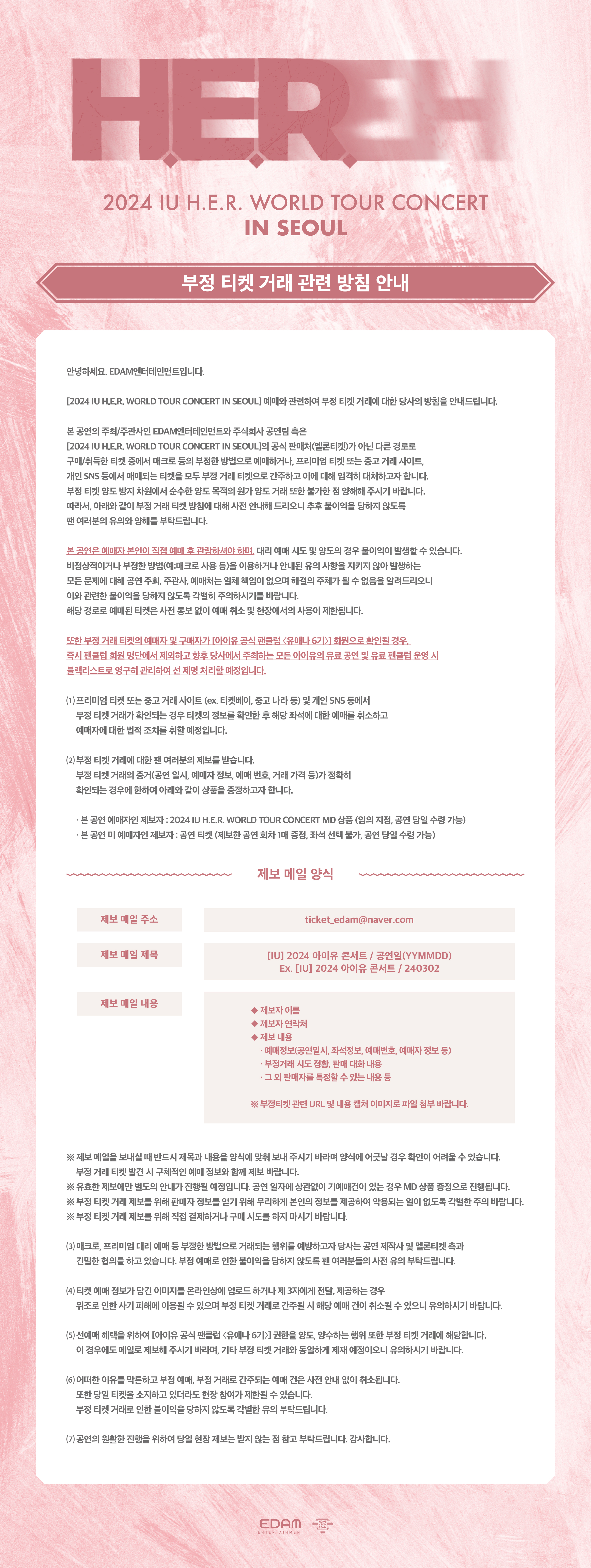 2024 IU HEREH WORLD TOUR CONCERT IN SEOUL 부정 티켓 거래 관련 방침 안내드립니다.
