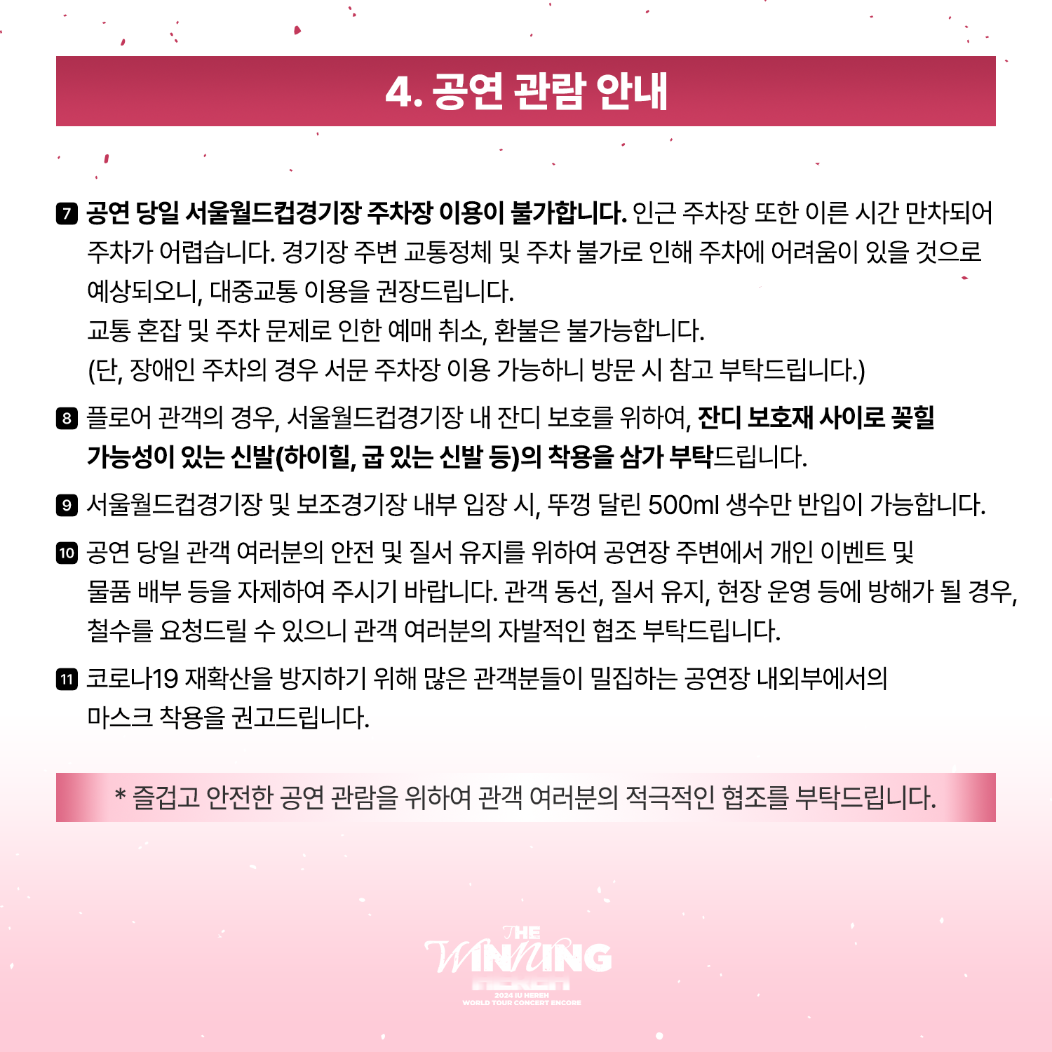2024 IU HEREH WORLD TOUR CONCERT ENCORE : THE WINNING 공연 관람 안내드리오니,