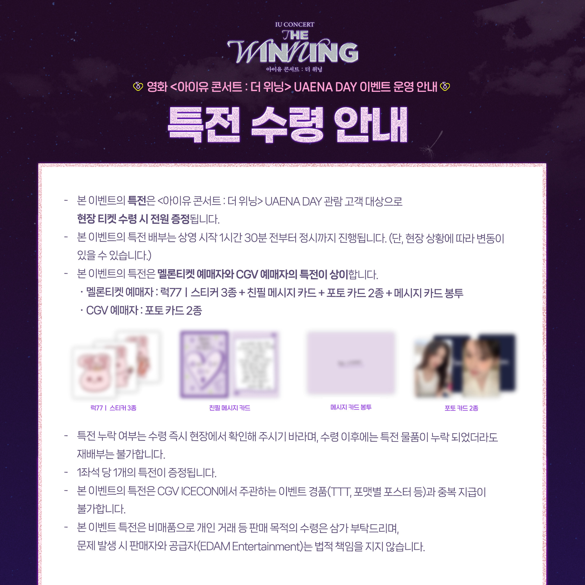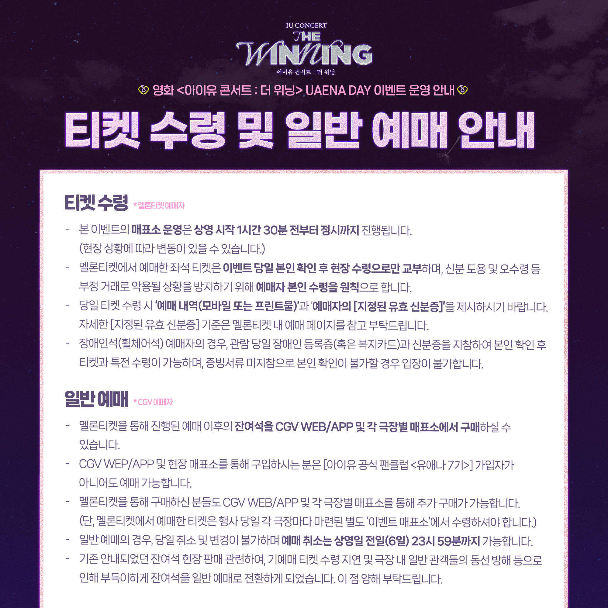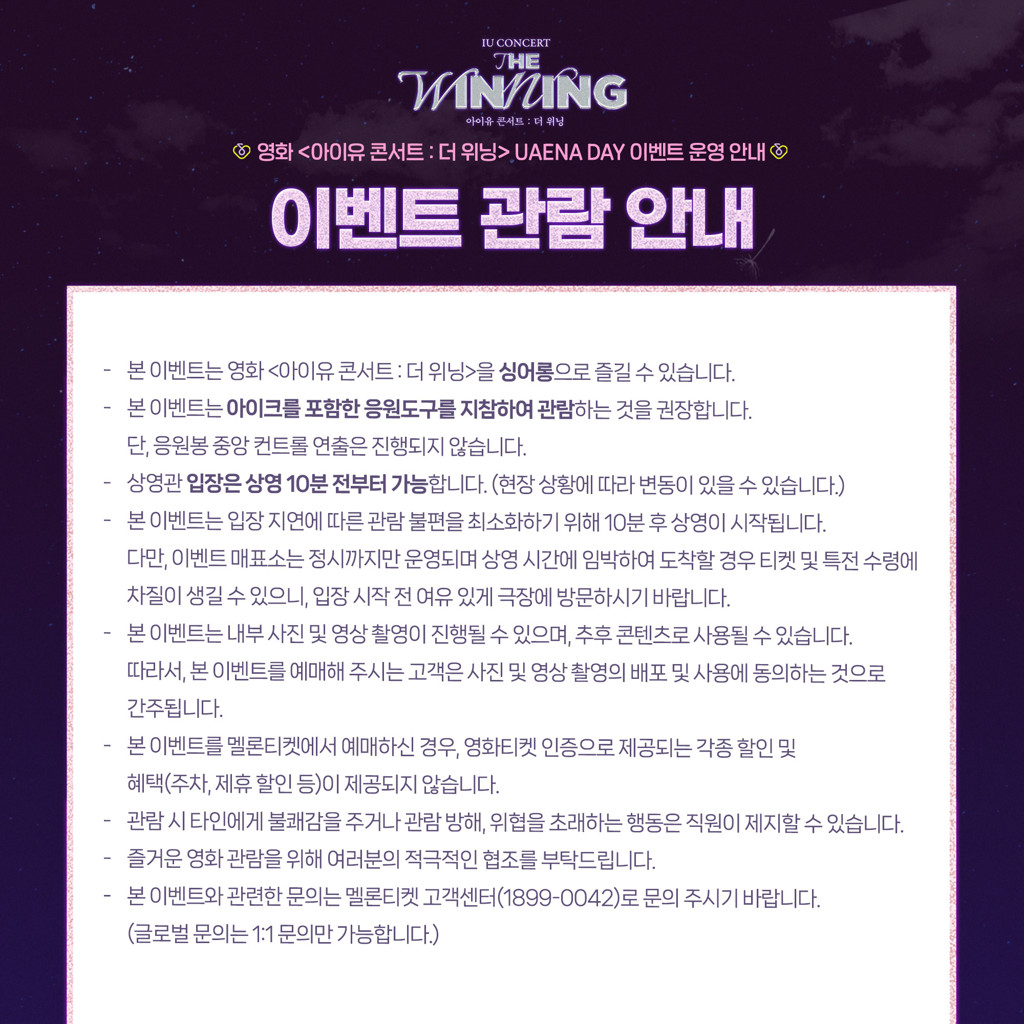 <IU CONCERT : THE WINNING> UAENA DAY EVENT 운영 안내드리오니,