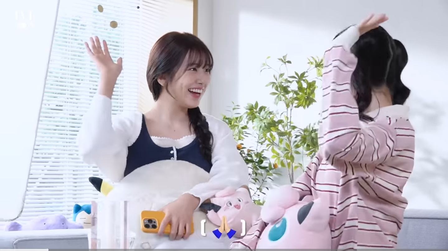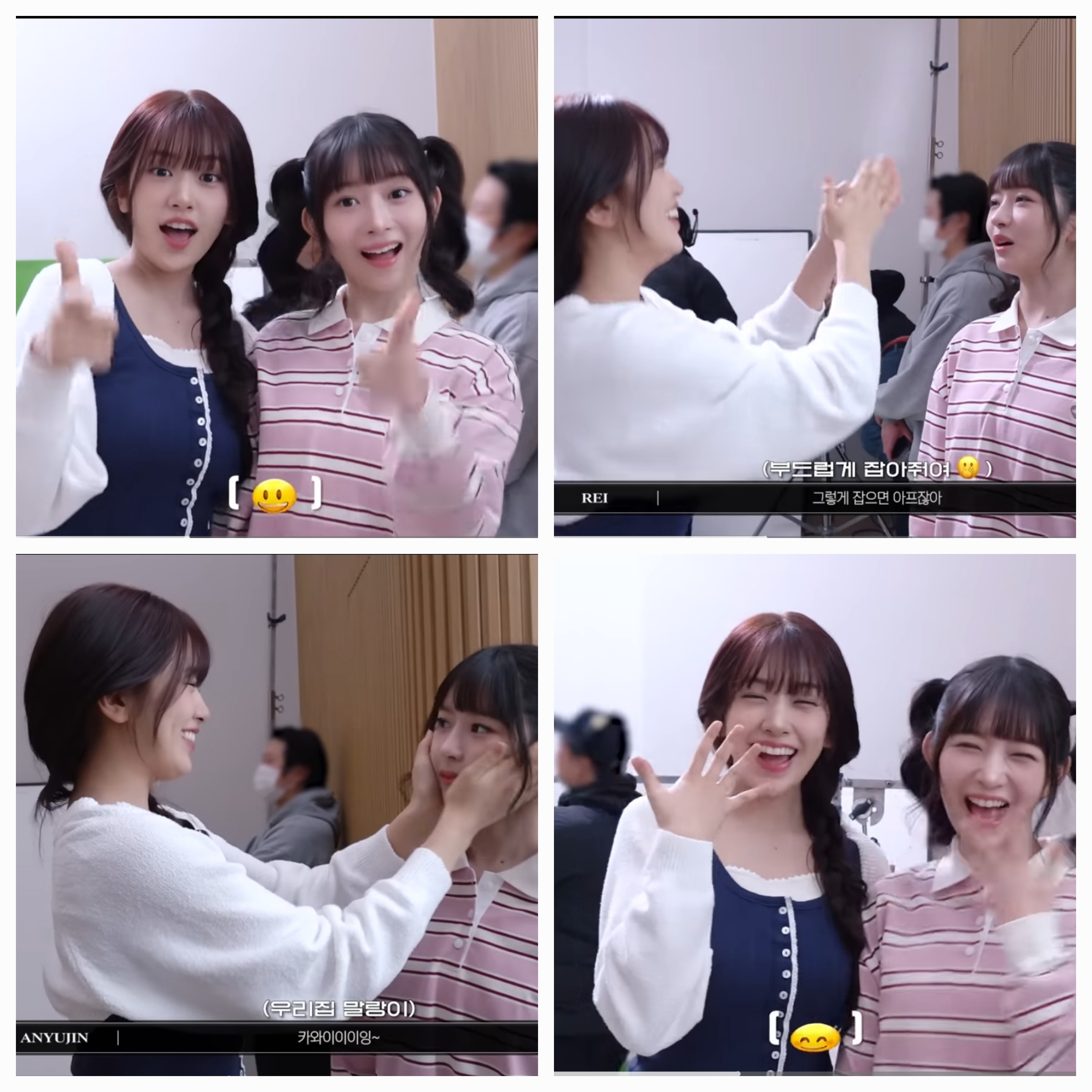 이랑 같이 서로서로 볼 만지면서 장난치는 장면