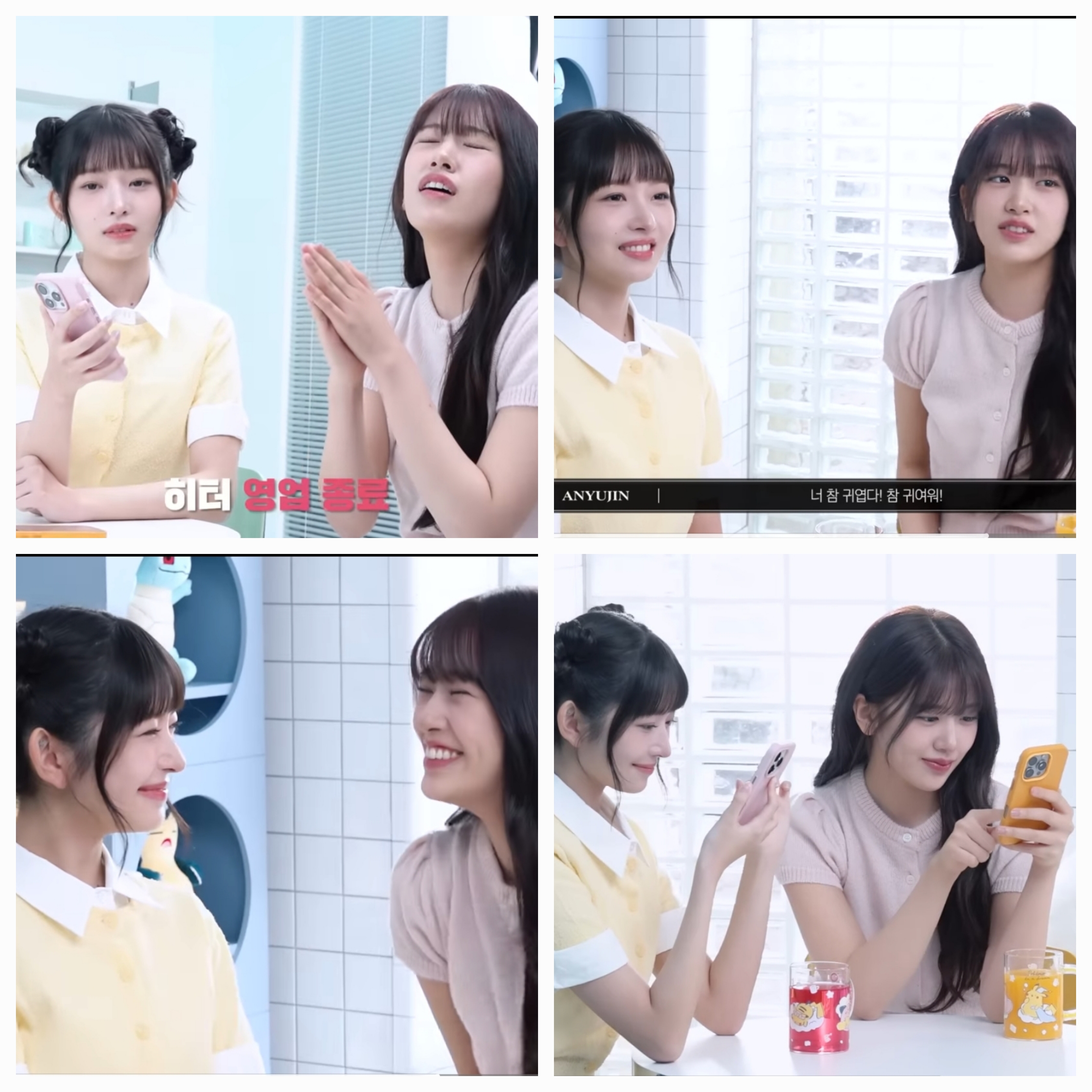 또 둘이 쳐다면서 웃는 모습, 서로서로 핸드폰 게