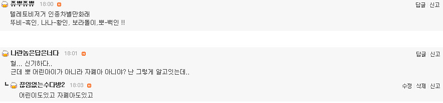 텔레토비중 가장 까맣고 뚜비가좋아하는 저모자와 춤을좋아하는것이 광대