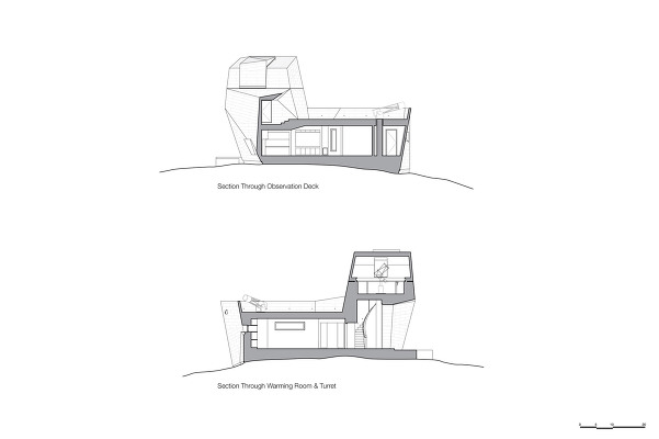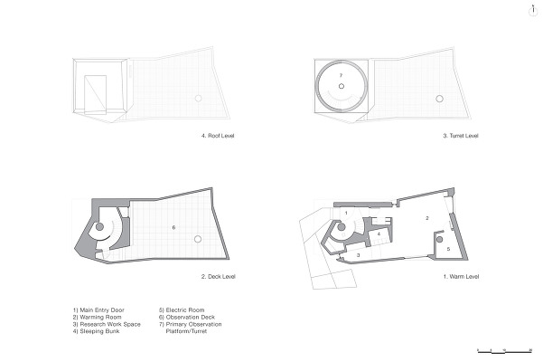 건물의 포탑은 회전할수있고 슬라이딩 해치로 망원경은 하늘로 열립니다.