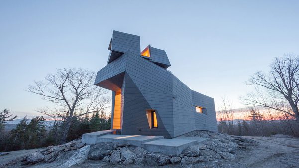 징크로 뒤덮인 천문대의 외형은 회색 화강암 바위들과 조화를 이룹니다.