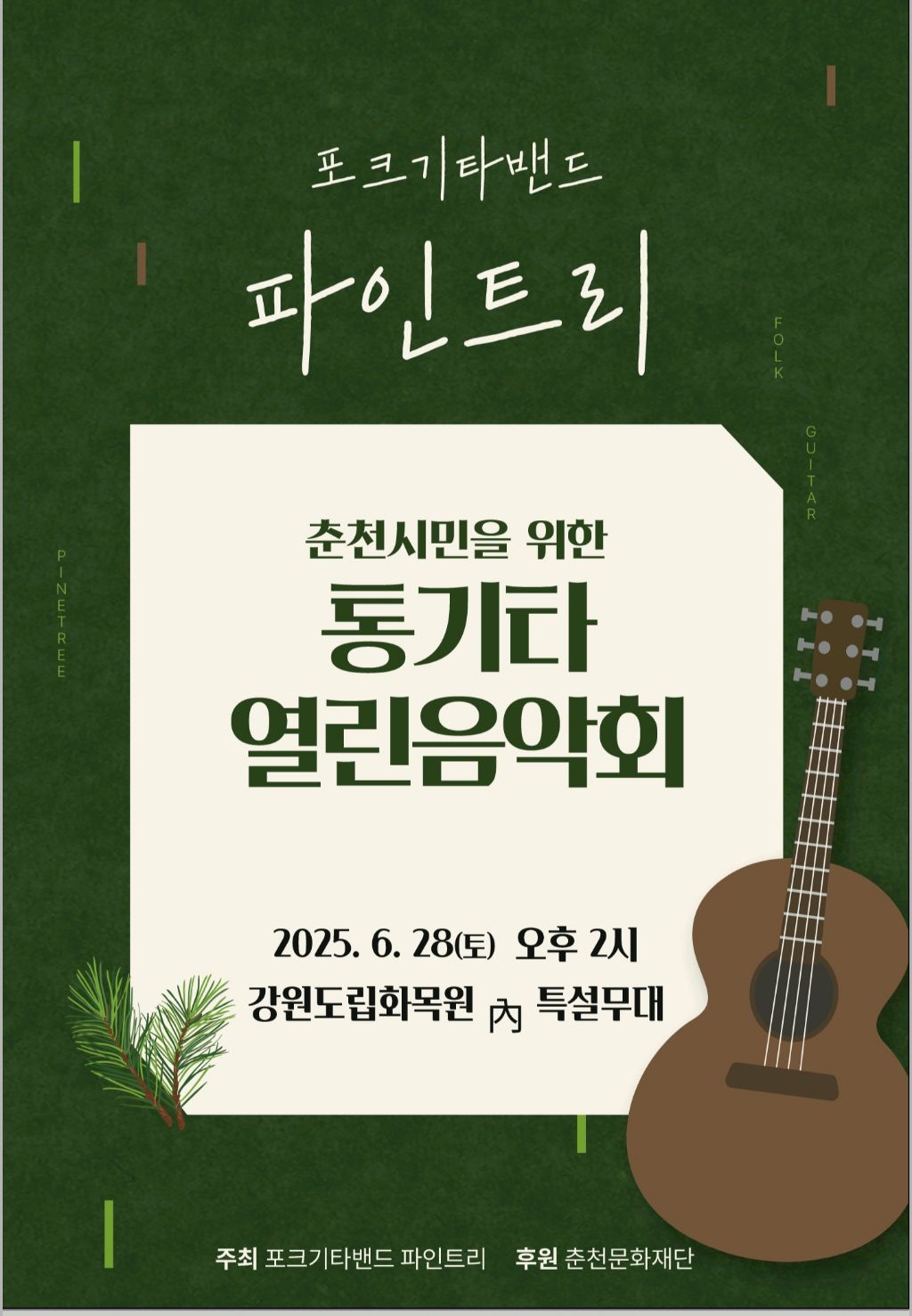 안녕하세요. 동아리 회원 분들과 어울려 '춘천시민을 위한 통기타 열린음악회'를 아래와 같이 갖고자 합니다. 응원과 격려 바랍니다.