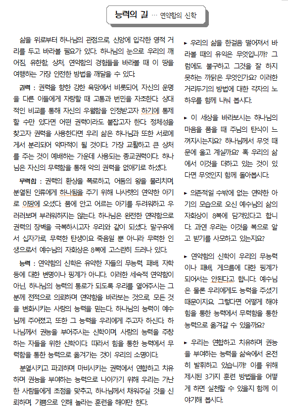1. 능력의 길 … “연약함의 신학”, 신앙에 입각한 영적인 거리를 두고 바라보기