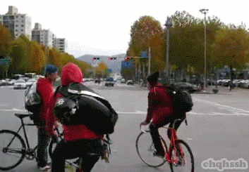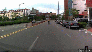도로위에서 선수처럼 차려입고 차선하나 떡하니 막고