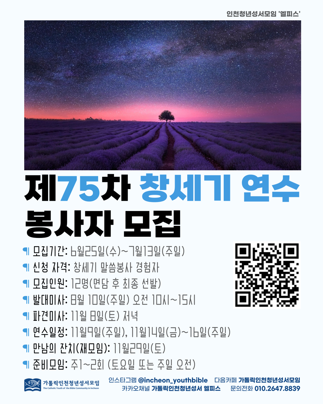 제75차 창세기연수 봉사자 신청 안내 작성자이은정 카타리나|작성시간25.06.25|조회수54 목록 댓글 0 글자크기 작게가 글자크기 크게가 제75차 창세기 연수 준비가 시작됩니다!![연수봉사 신청] 게시판을 참고하세요~!! 다음검색 현재 게시글 추가 기능 열기 북마크 공유하기 신고 센터로 신고 댓글 댓글 0 댓글쓰기 답글쓰기 댓글 리스트