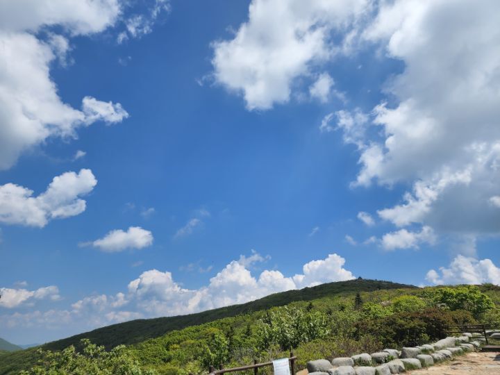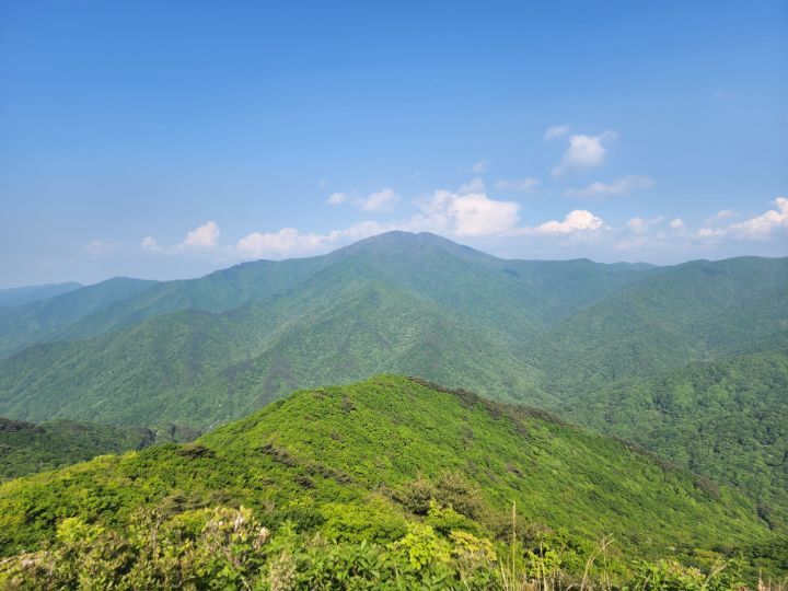.만복대 조망은 환상적입니다. 정령치부터 바래봉까진 생각보다 찐빵구간이 많아 힘들었습니다. 물집이 잡혀버리니 내리칠때 과감한 동작을 취하기 어렵습니다. 그렇다고 멈출순 없어 지치면 걸으면서 에너지바를 섭취하고 힘냅니다. 그러다보니 바래봉이 보입니다.