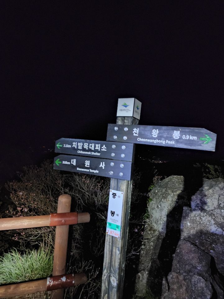 .드디어 그렇게 보고 싶었던 천왕봉을 만납니다. 어두운 배경에 천왕봉 단독 인증샷이라니 이건 귀합니다.