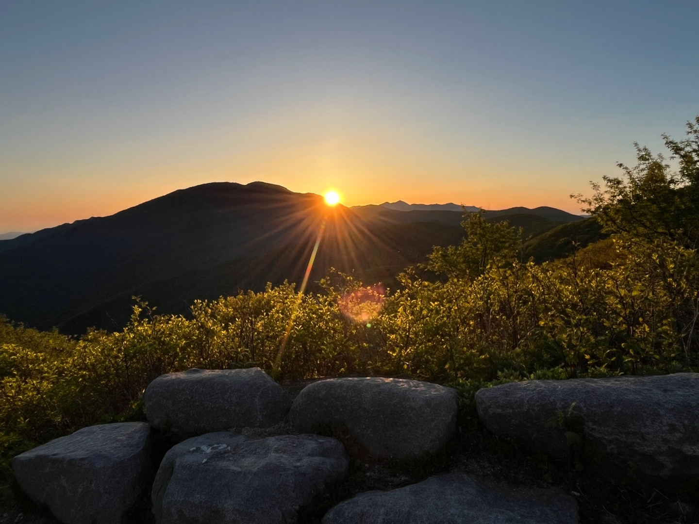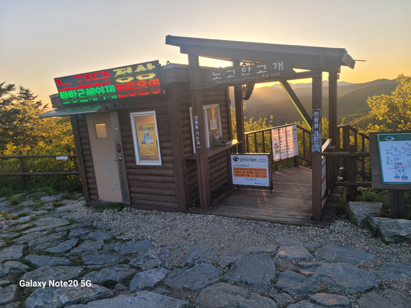 노고단 입구에 도착하여 산속의 일출을 봅니다