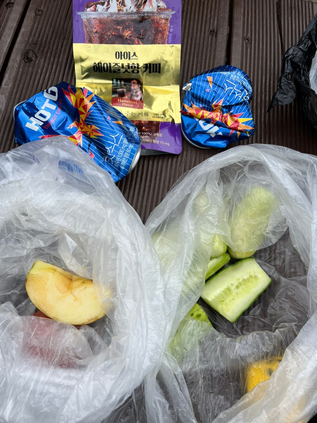 우리가 먹을거 배낭에 바리바리 지고 다니는데