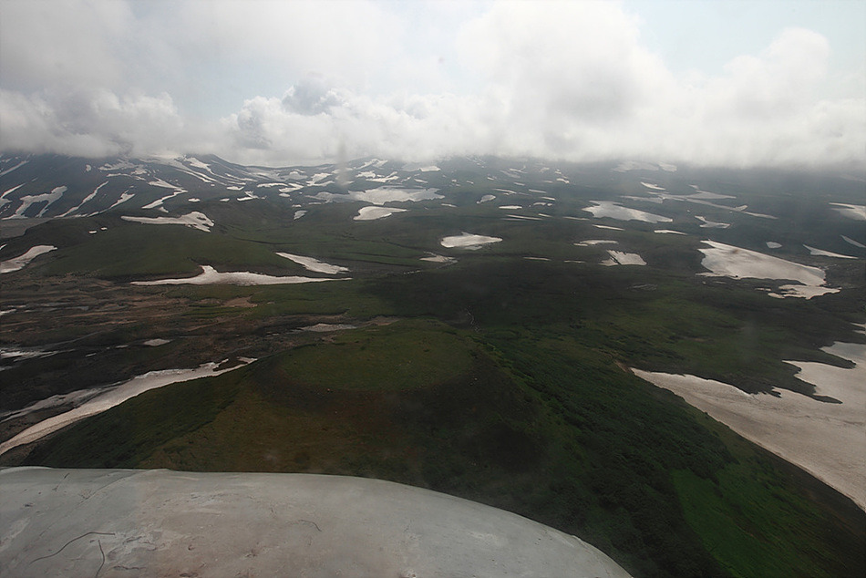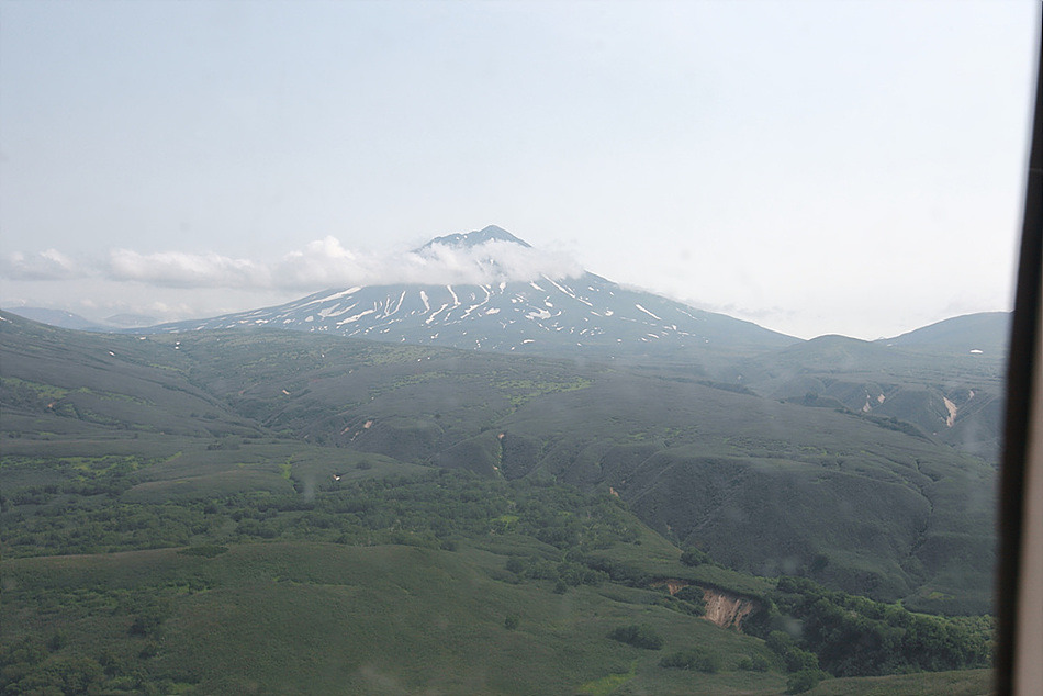 헬기타고 가면서 보는 캄차카 모습. 군데 군데 눈이 보인다....