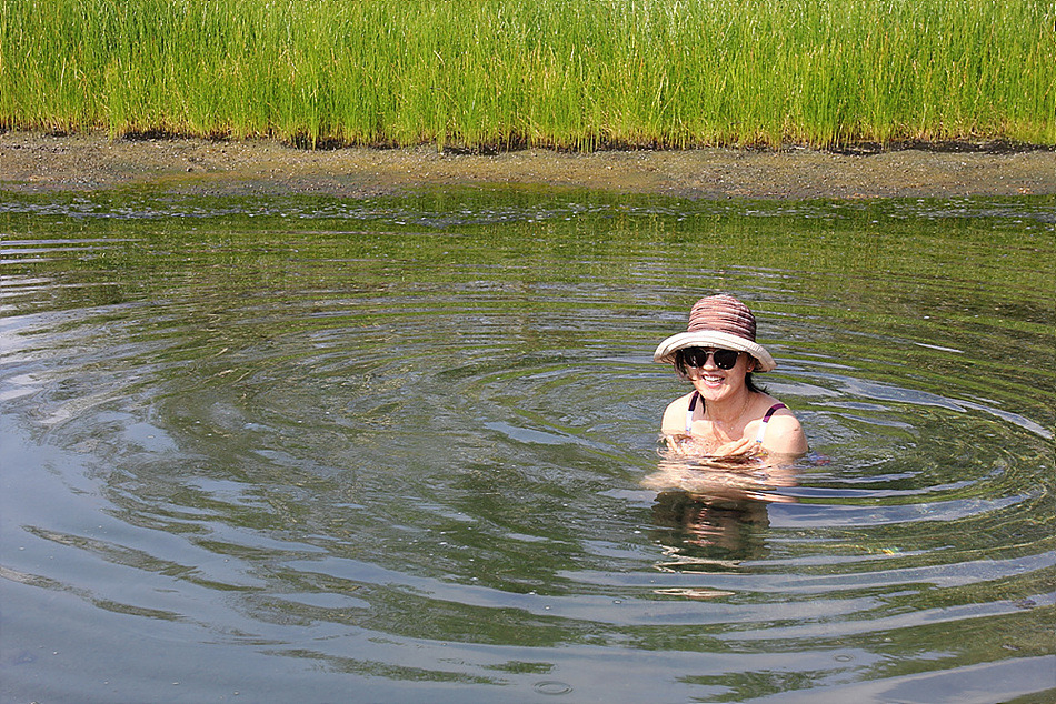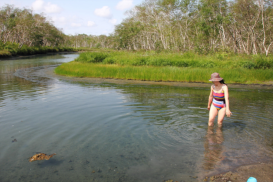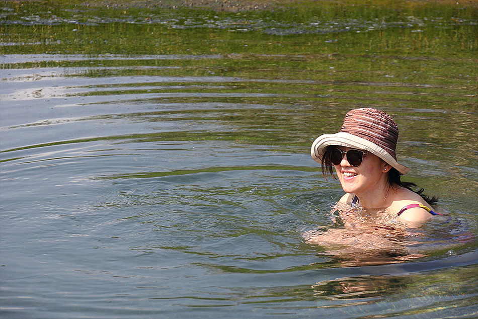 탈의실에 들어가서 수영복으로 갈아입고 온천욕을 즐긴다....