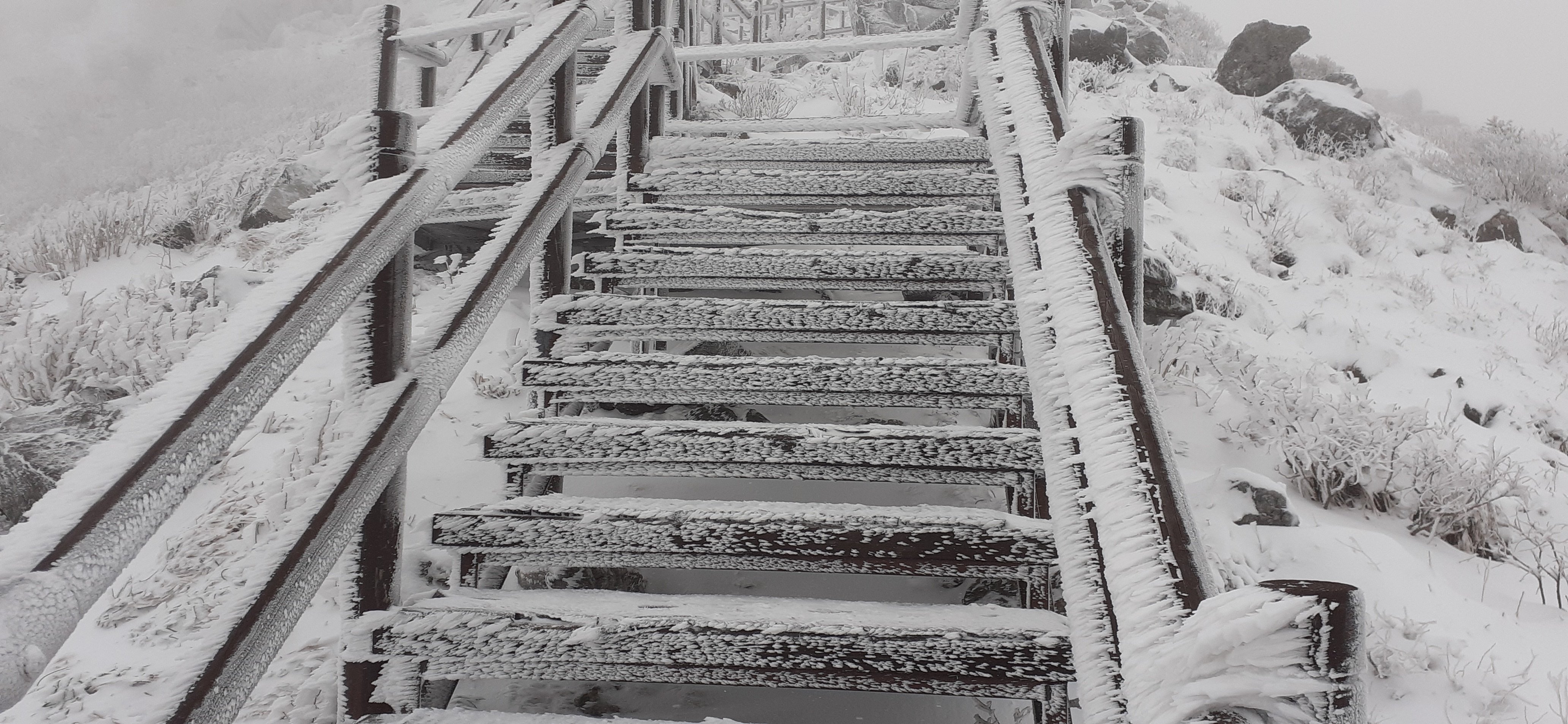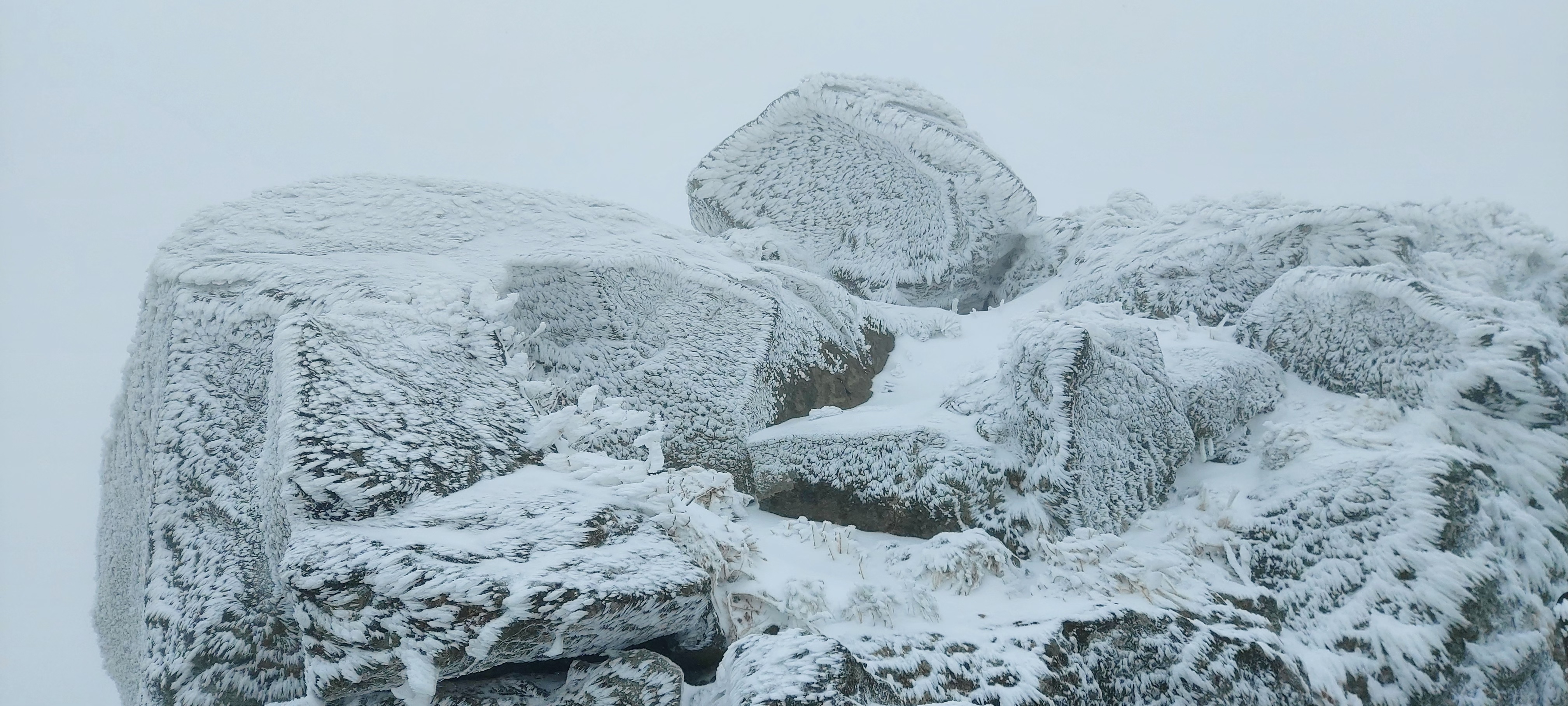 강풍에 순식간에 눈과 상고대가 만들어지고