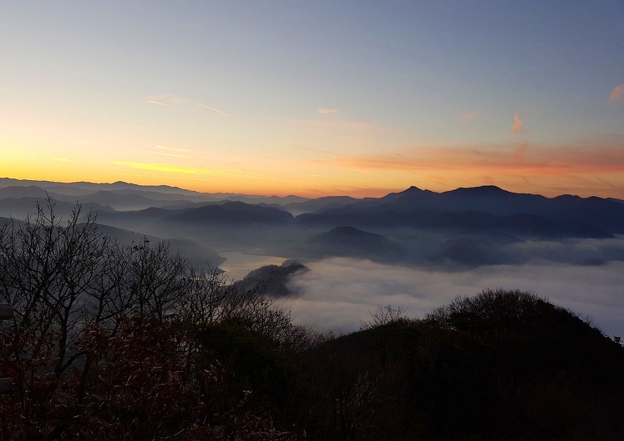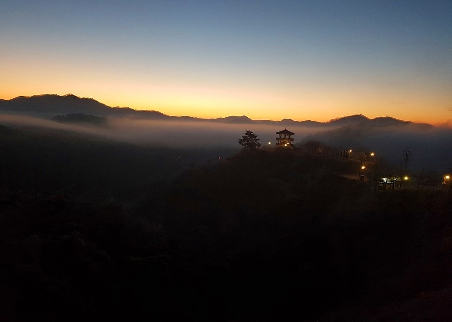 옥정호 새벽운무를 보려 편히쉴공간, 여관을 떨치고 한파속 밤길을 재촉한 산객의 열정을 헤아려봅니다.