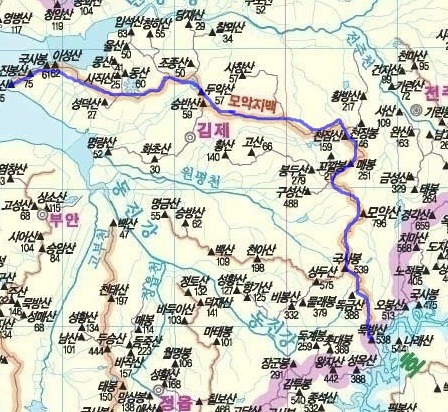 그속으로 7개의 지맥 (성수지맥56km, 천황지맥59km, 견두지맥37km, 삼신지맥32km,