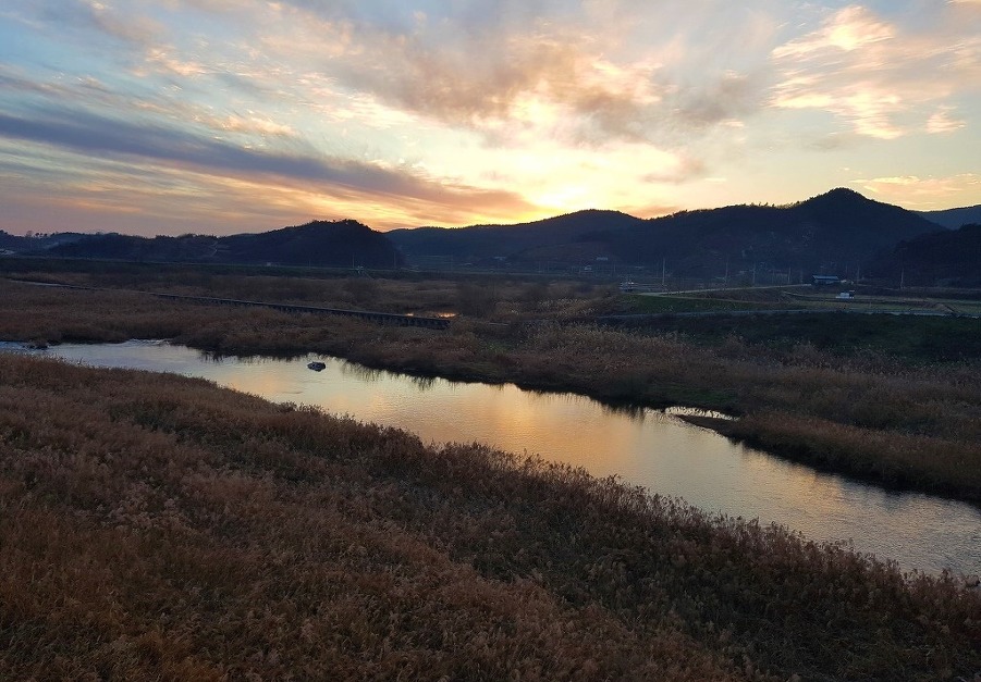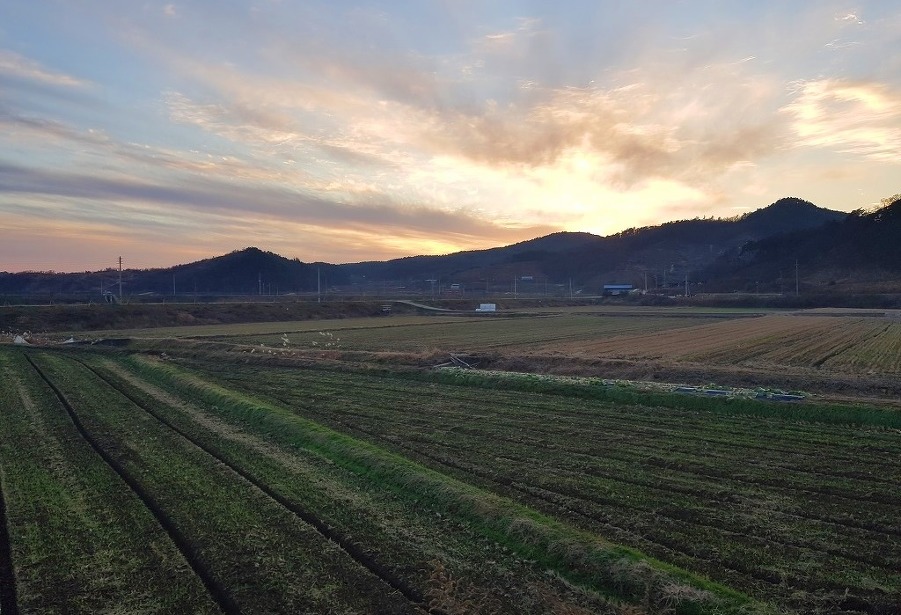 평남리 들판과 노을