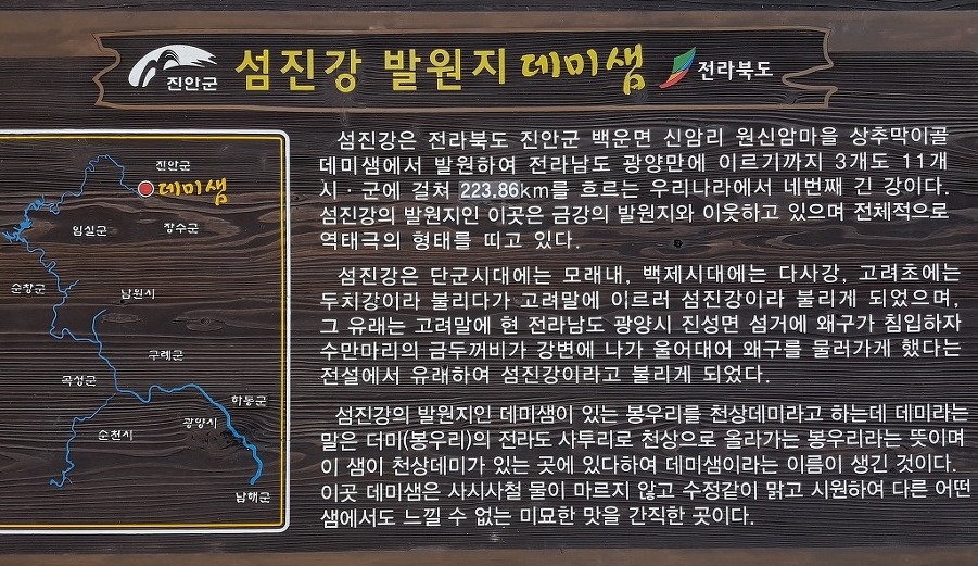 신증 "동국여지승람"에도 섬진강의 발원지를 중대산 또는 마이산으로 보고