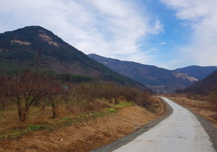 마을로 이어지는 길도 있었지만 새로난 자전거길인 시멘트길로 짜박짜박 걸음한다.