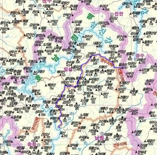 금,호남 정맥-호남정맥 522km 총 724km의 산줄기가 맑은물 섬진강을 감싸 안는다.