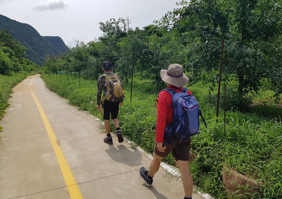 사과나무가 심어진 자전거길도 지나고 덥다 더워