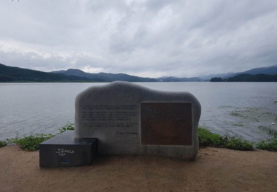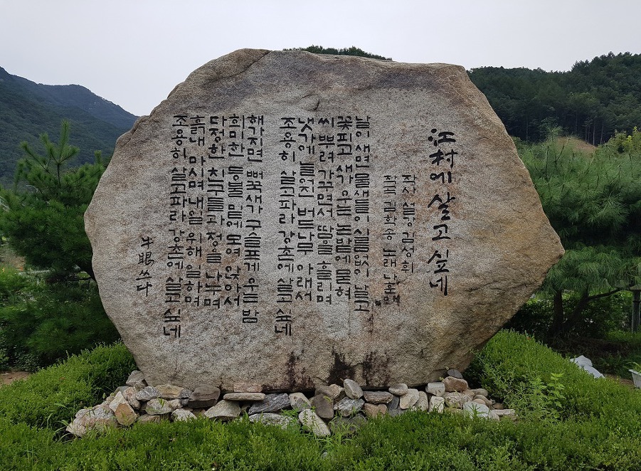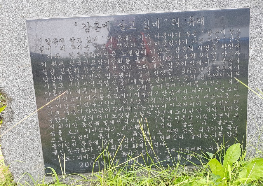 강촌에 살고 싶네 노래비를 배경으로