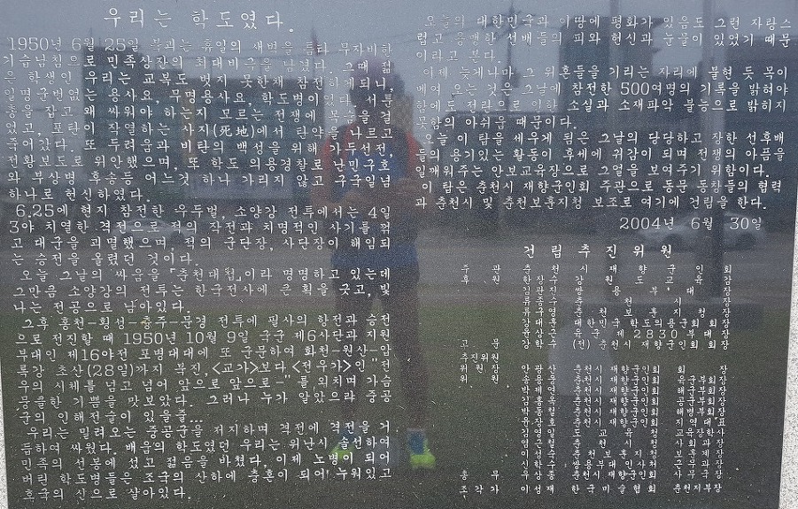 6,25참전 학도병 기념탑