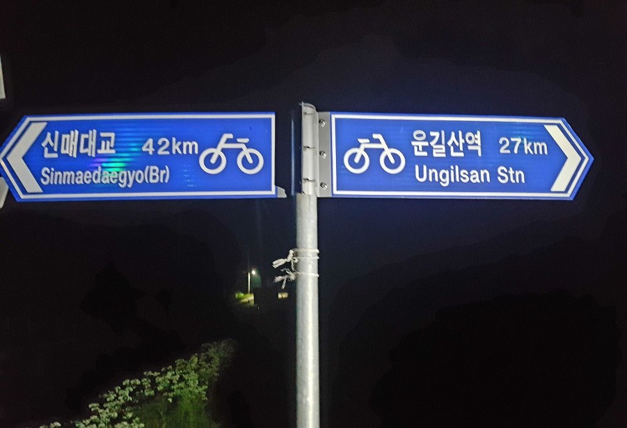다리 아래 자전거 길로 이어간다.