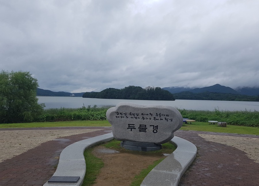 멀리 족자도라는 작은 섬이 남한강과 북한강을 대신하는듯하다.