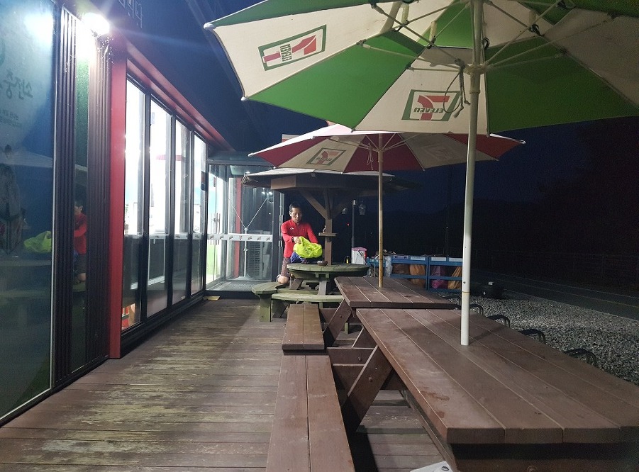 잠이와서 잠시 원두막에 들어가 잠을 청한다.