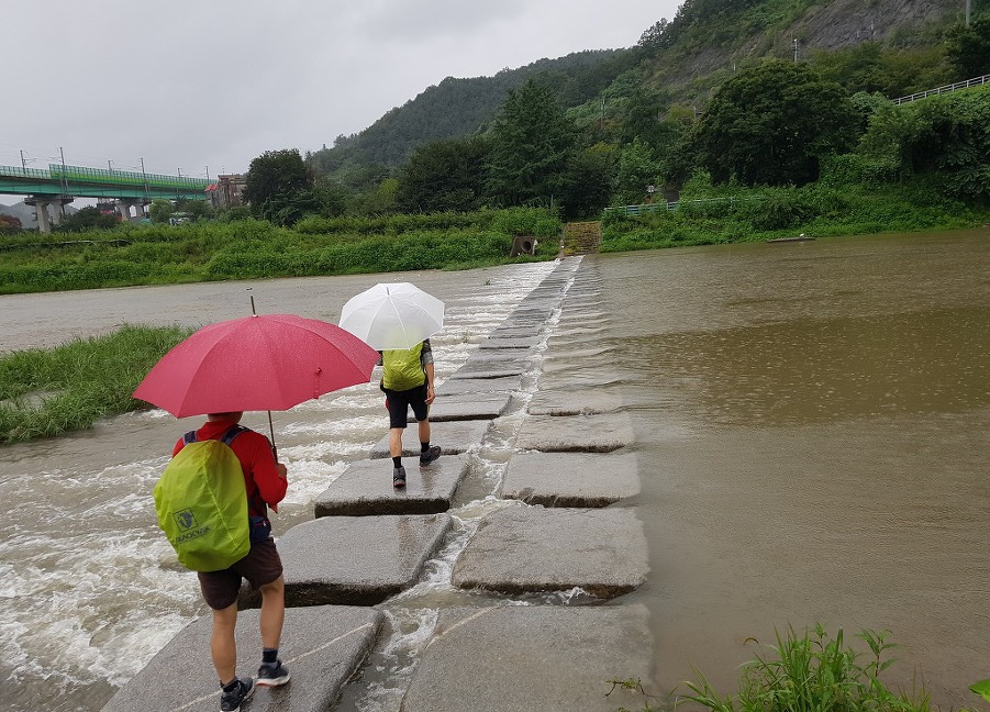 철벅 거리며 지나지만 두분은 아직도 조심스레 한발의 의미로 걸음 하시는듯