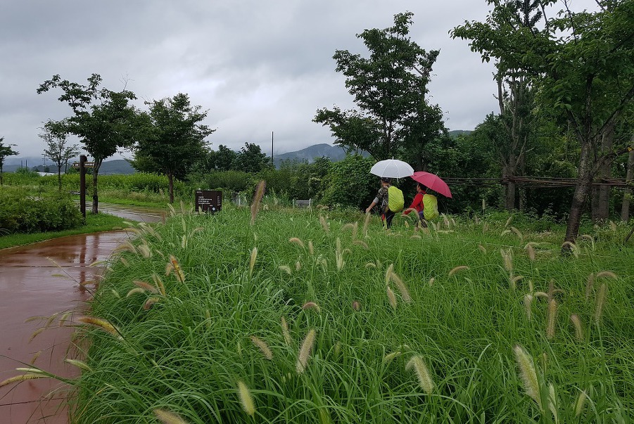 가을의 전령사 수크렁이 가득한 강가길에 두분의 가을 우산이 정겹다