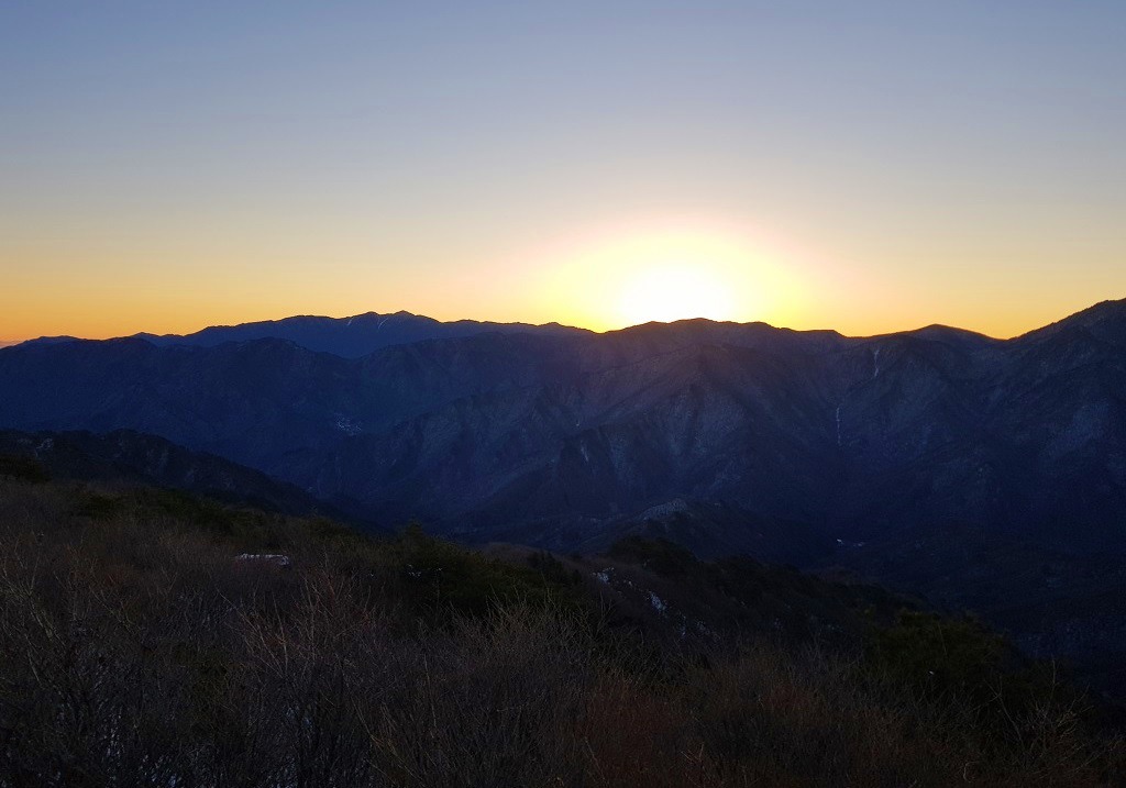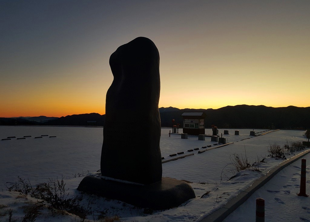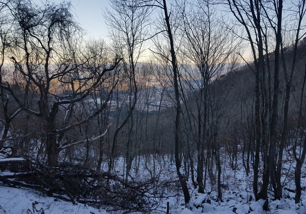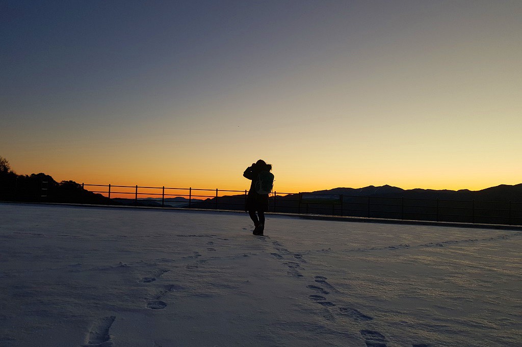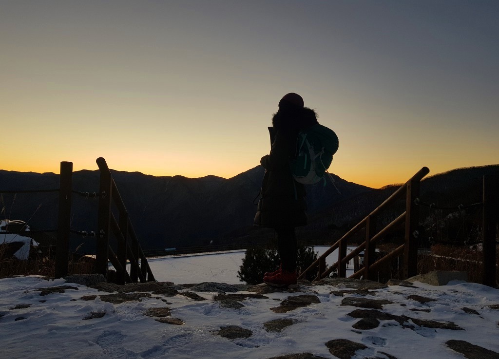 아무도 밟지않은 정령치 주차장에서 조금 늦은듯한 여명을 보게 된다.
