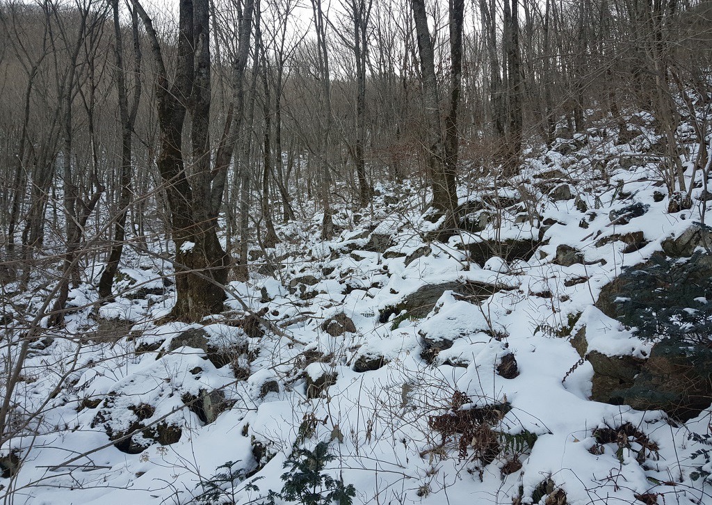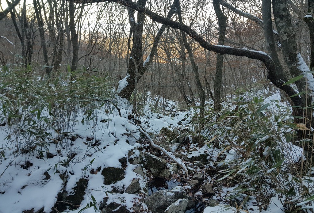 임천강 발원지는 이곳 고리봉에서 대간길과 비슷하게 내려 가지만 우리는 대간길을 버리고 계곡으로 스며 들어가야 한다.