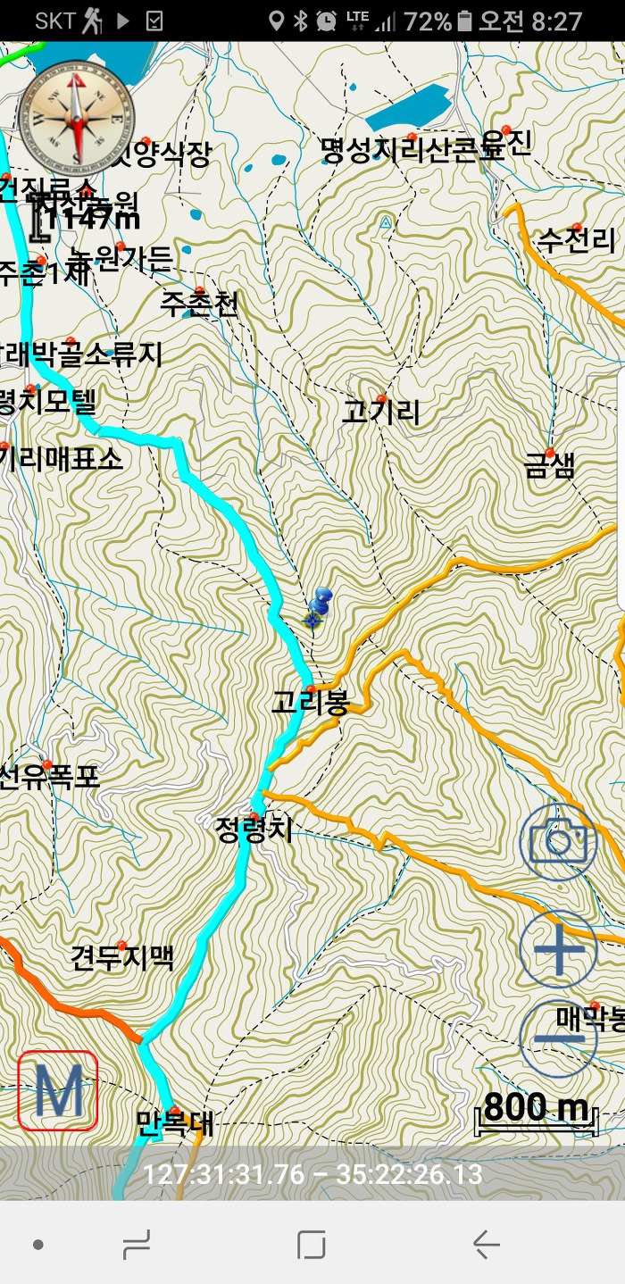 남원 택시로 운봉을 지나 백두대간길 고기 삼거리에서 도착하니 정령치로 더이상 진행이 불가하여 이곳에서 내려