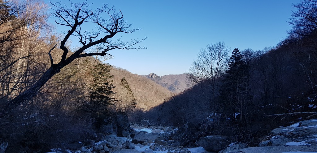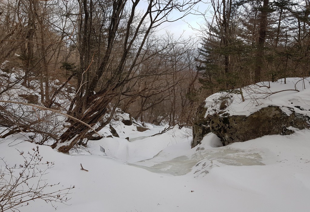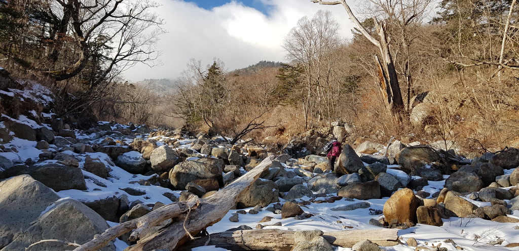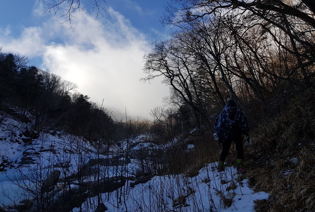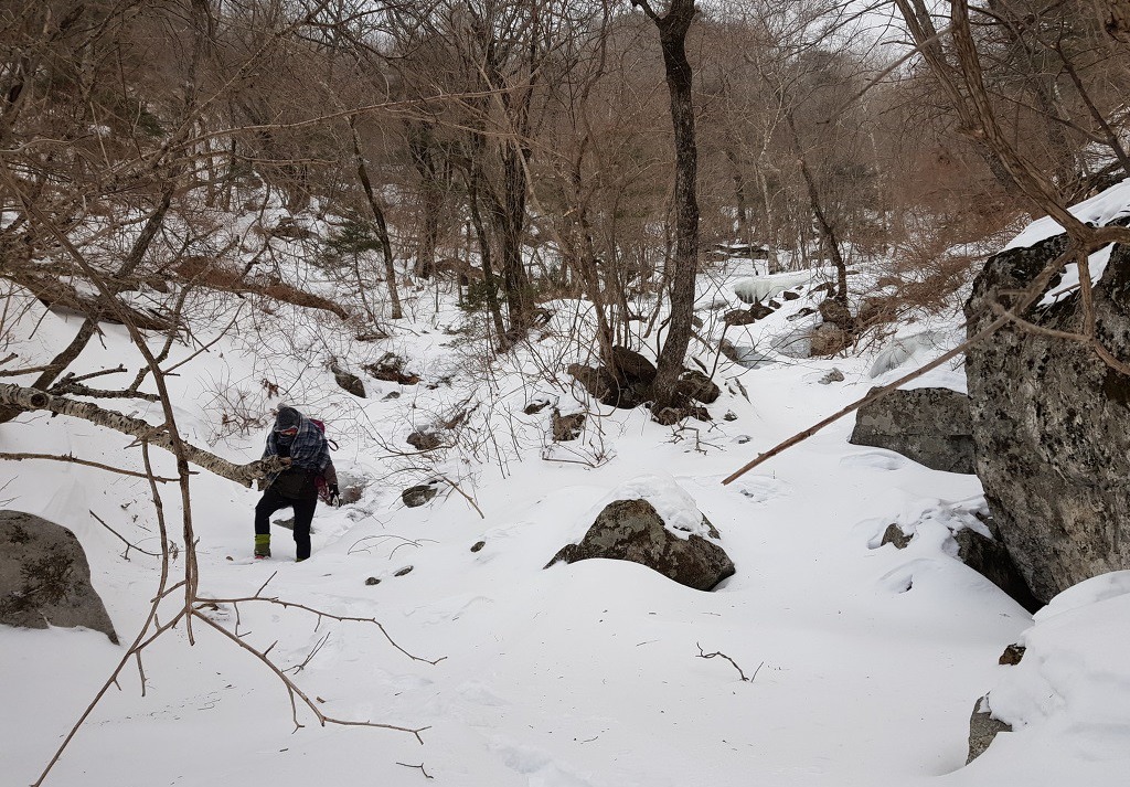 계곡으로 파고 들만한 장소를 찾아 보지만 눈이 많아서