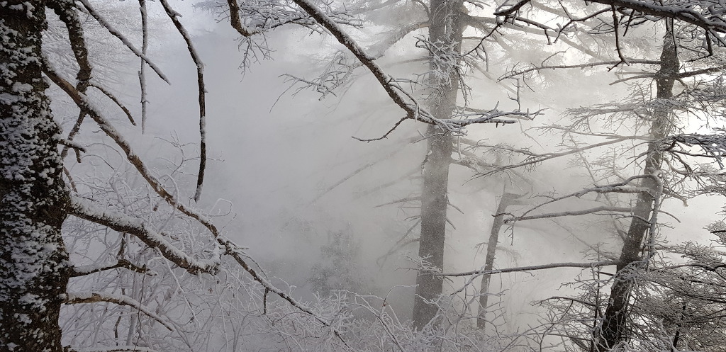 천왕에서 중봉으로 가는길 운무가 가득 했지만 눈이 많아 급하게 아이젠을 착용해본다.