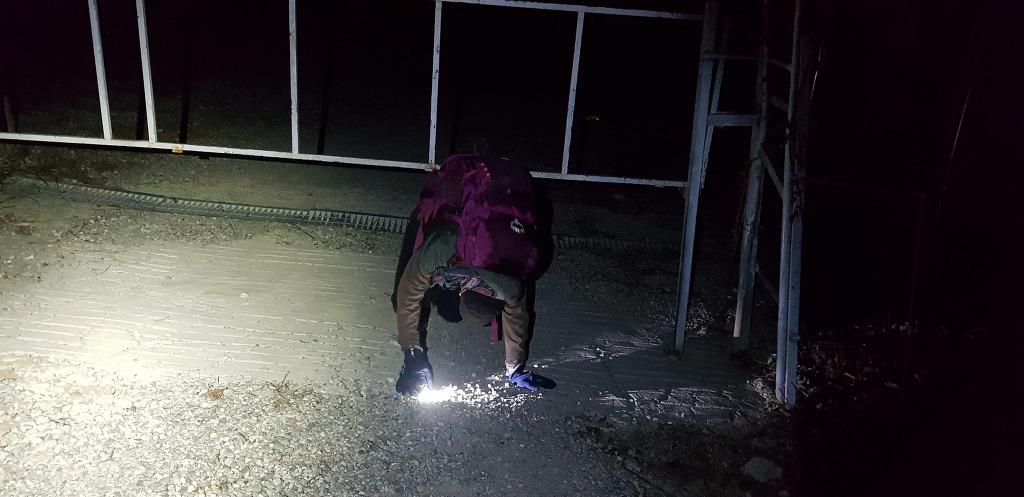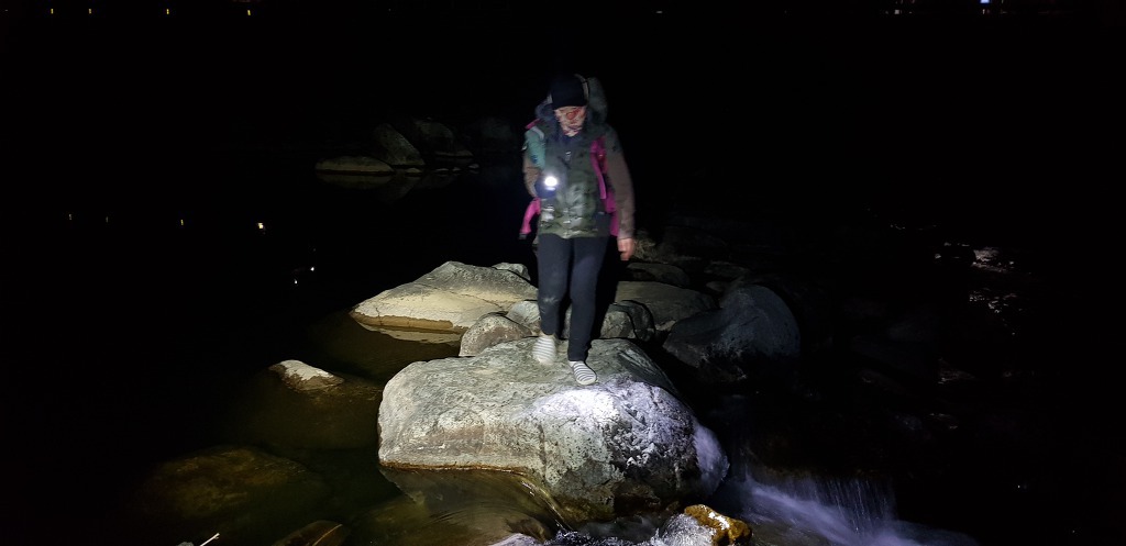 인천에서 오신 한무리의 등산객들이 렌턴 불빛을 밝히며 천왕으로 오른다.