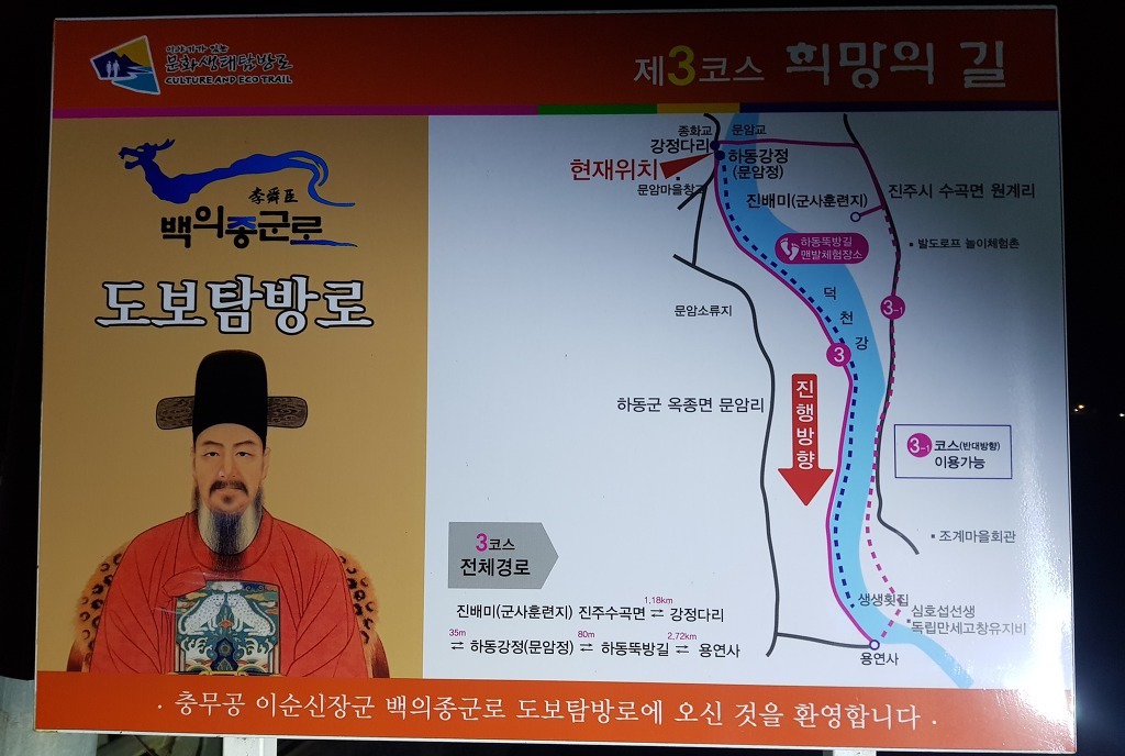 장군께서 걸으셨던 그길을 맛보며 진주 남강에서 덕천을 마치게 된다.