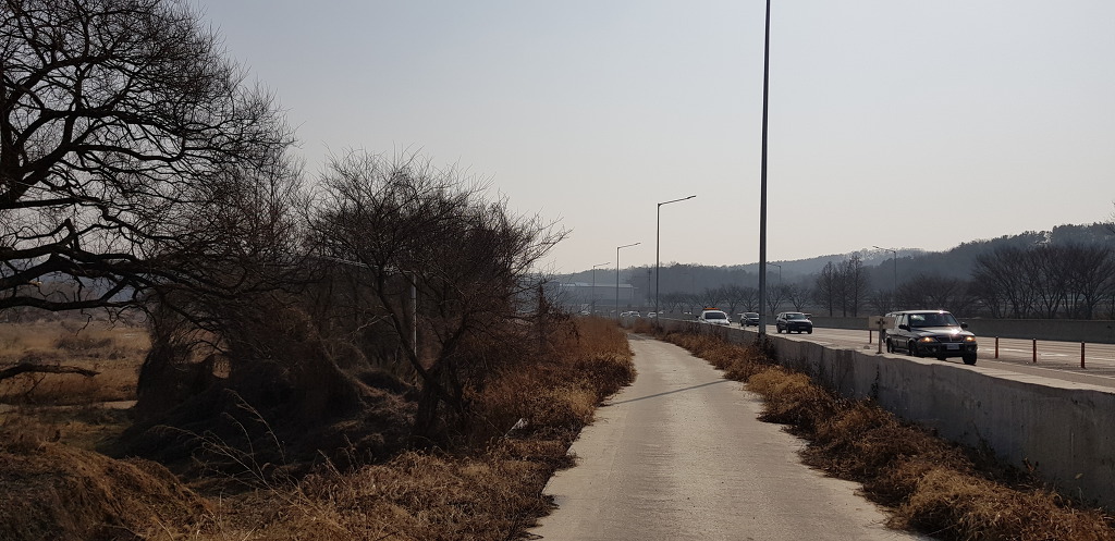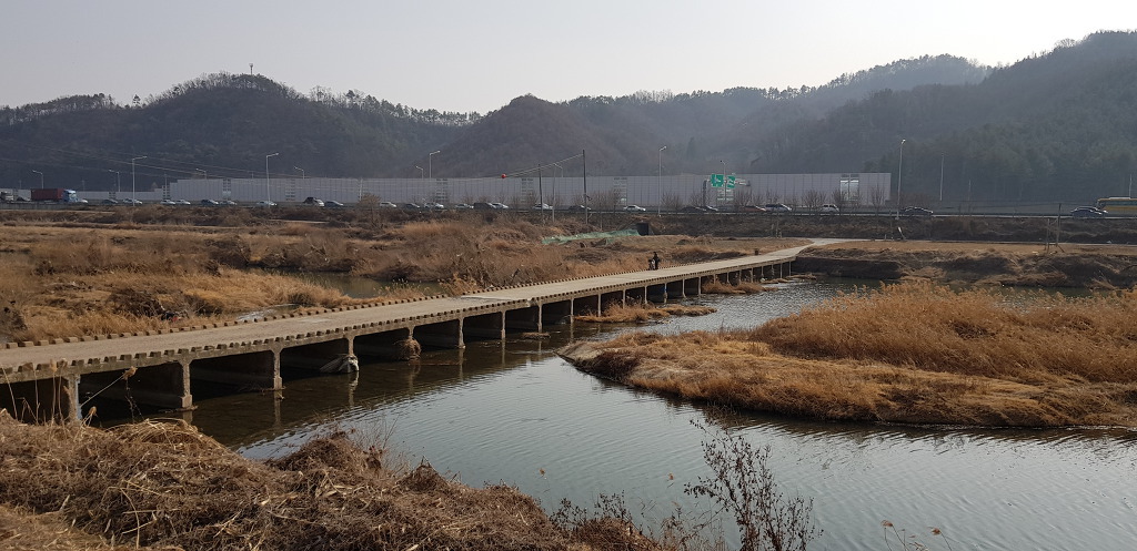 성제 세월교와 경부 고속도로 한동안 경부 고속도로와 함께 이어지는 강길