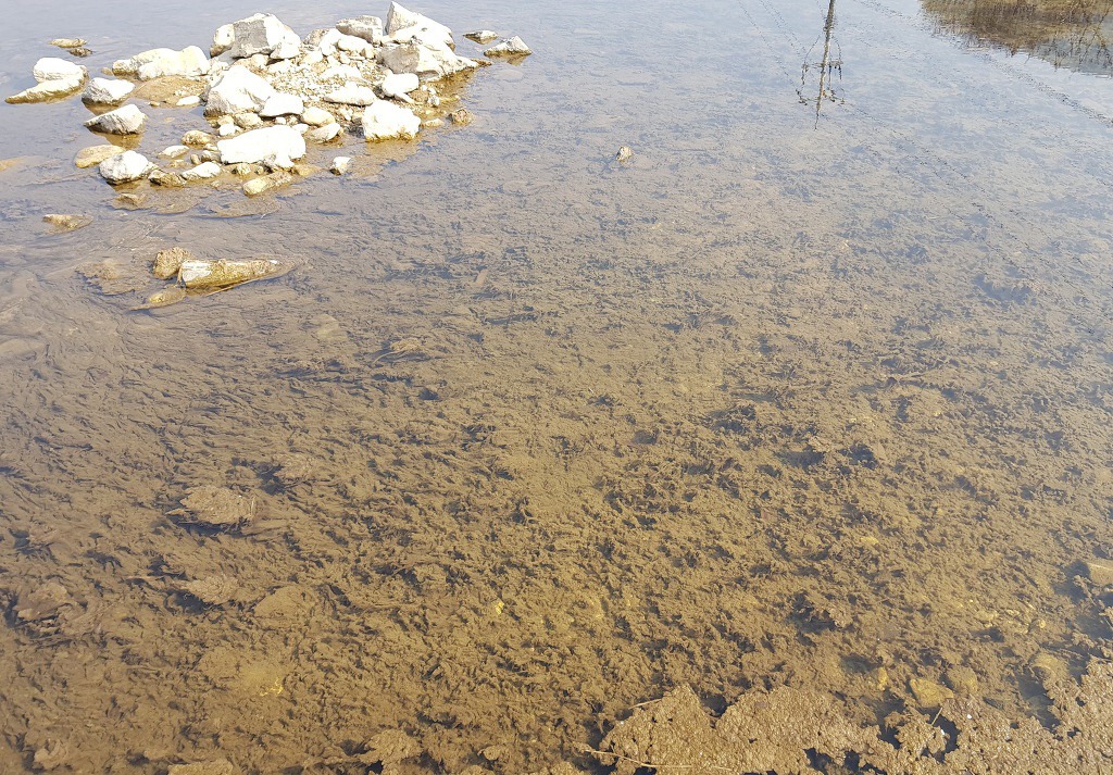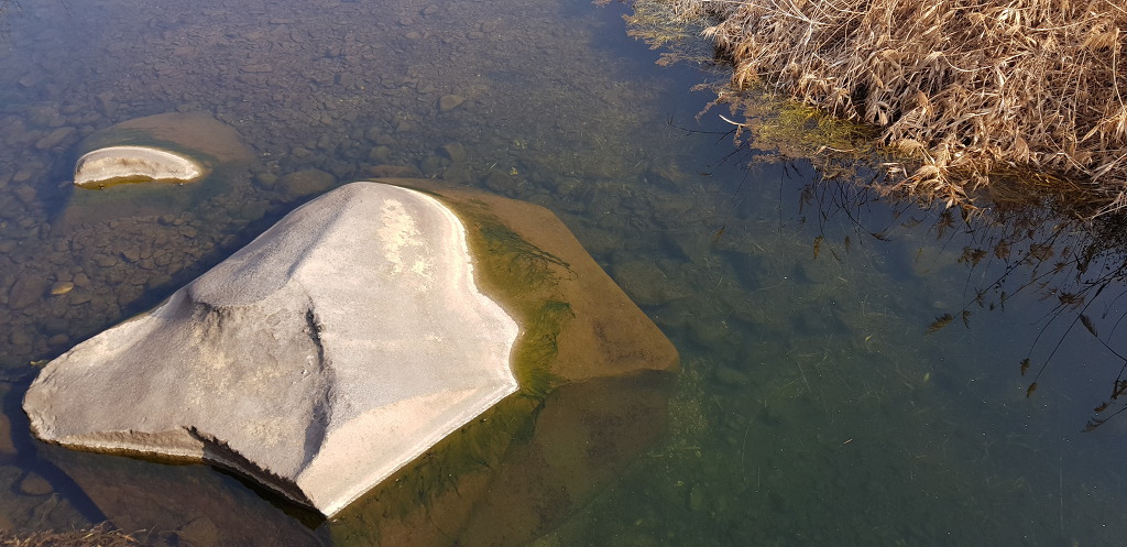 다리 아래로 흐르는 물은 탁하며 물속 풍경은 찌거기만 가득 달라 붙어있어