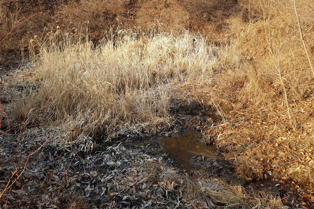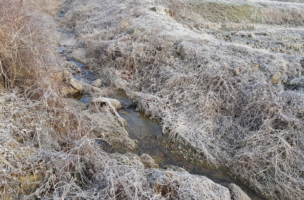 마른 풀섶에 서리가 하얗게 내려 앉아있고