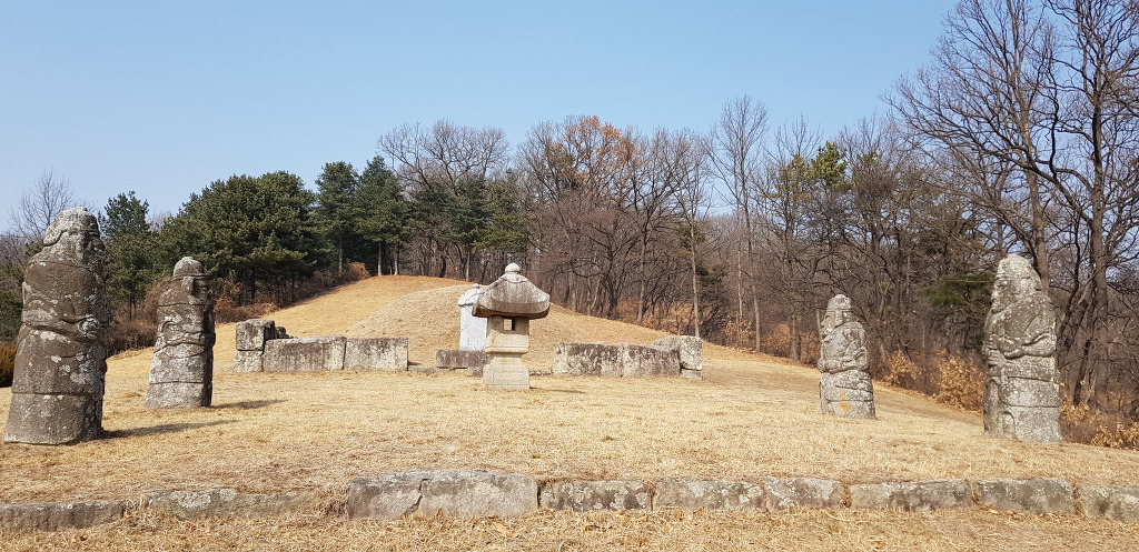 1품 이상의 벼슬을 한사람만 세울 수 있는 석등과 무인석이 한명회를 지키느라 서 있다
